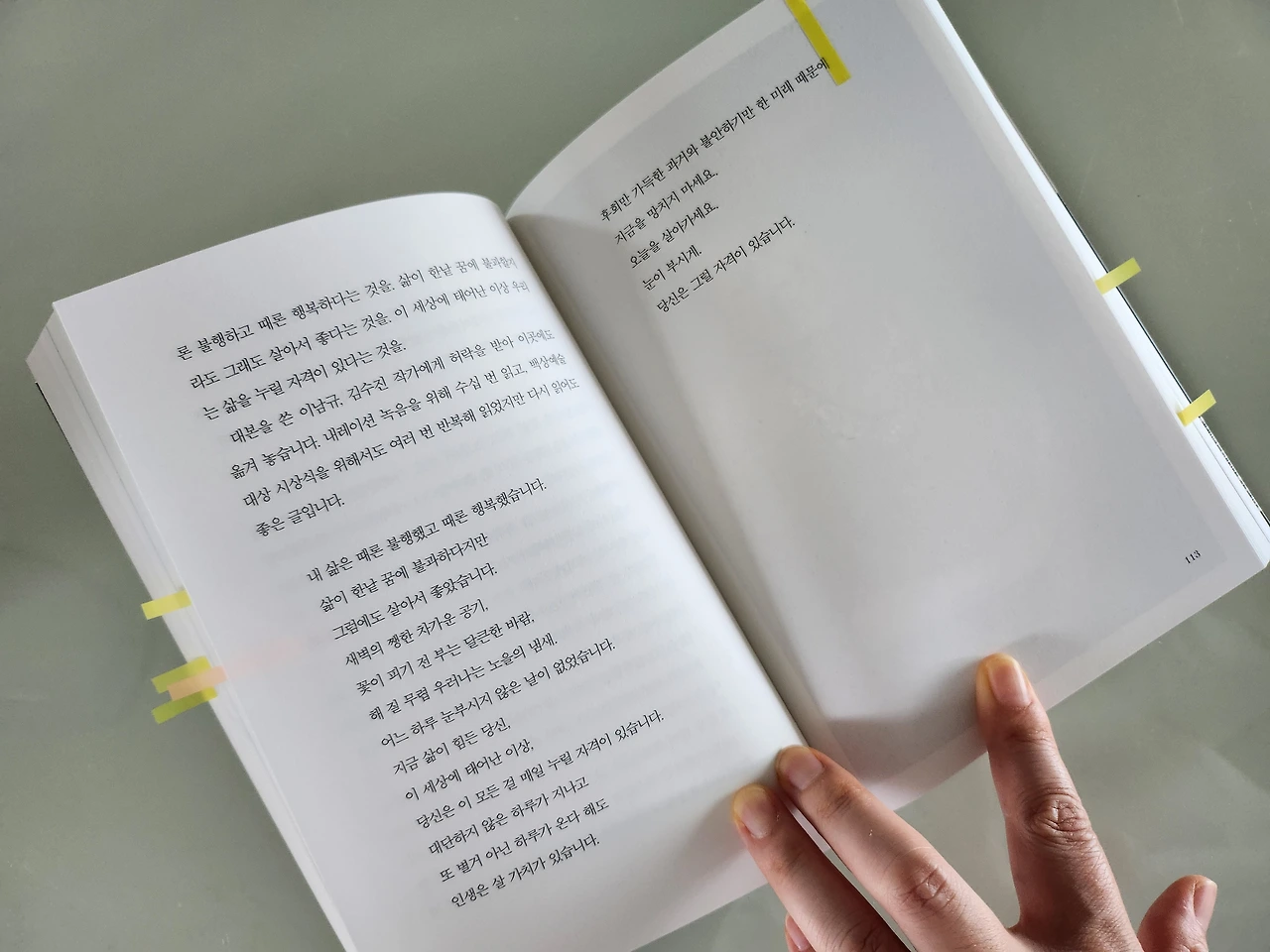 책 속에 김혜자 선생님이 출연한 작품들의 좋은 대사들이 마구마구 숨어있어요. 문장수집가(?)인 저는 너무 좋더라고요. 시간 되시면 한번 읽어보세요. 전 도서관에서 대출해서 읽다가 수집하고 싶은 문장들이 너무 많아서 소장용으로 책을 구입했습니다. ㅎㅎㅎ 책 곳곳에 숨어있는 문장들이 누군가의 가슴에 위로와 치유로 다가가길 바라봅니다.^^