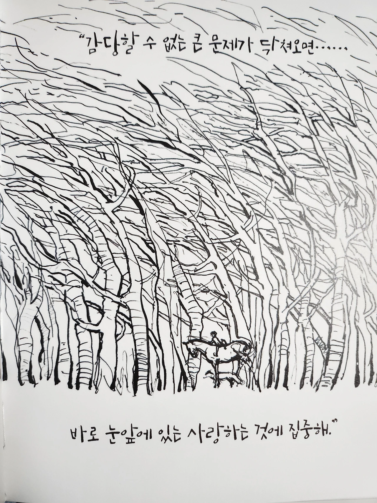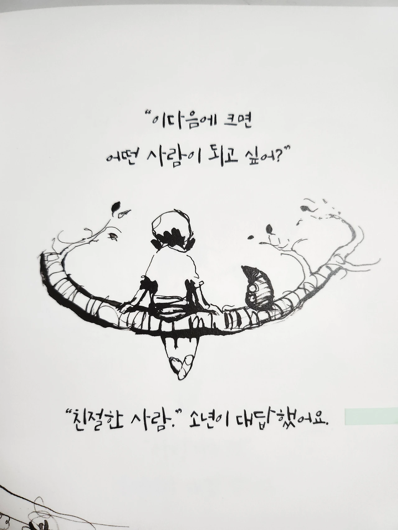 가만히 작가의 말을 마음으로 들어보세요. 어떤 마음이 들리시나요? 어여쁜 분에게 귀한 선물을 받았습니다. 어른들을 위한 그림책, 단숨에 읽어버리고 나서 몇 컷, 카메라에 담았어요. 참 감사한 일이죠? 세상에 이렇게 좋은 책들이 많다는 것! 내가 마음만 먹으면 이런 책들을 읽을 수 있는 자유가 있고, 읽을 능력이 된다는 것에 감사합니다. 책을 읽을 수 있는 저는 복 받은 여자예요. ㅎㅎㅎ