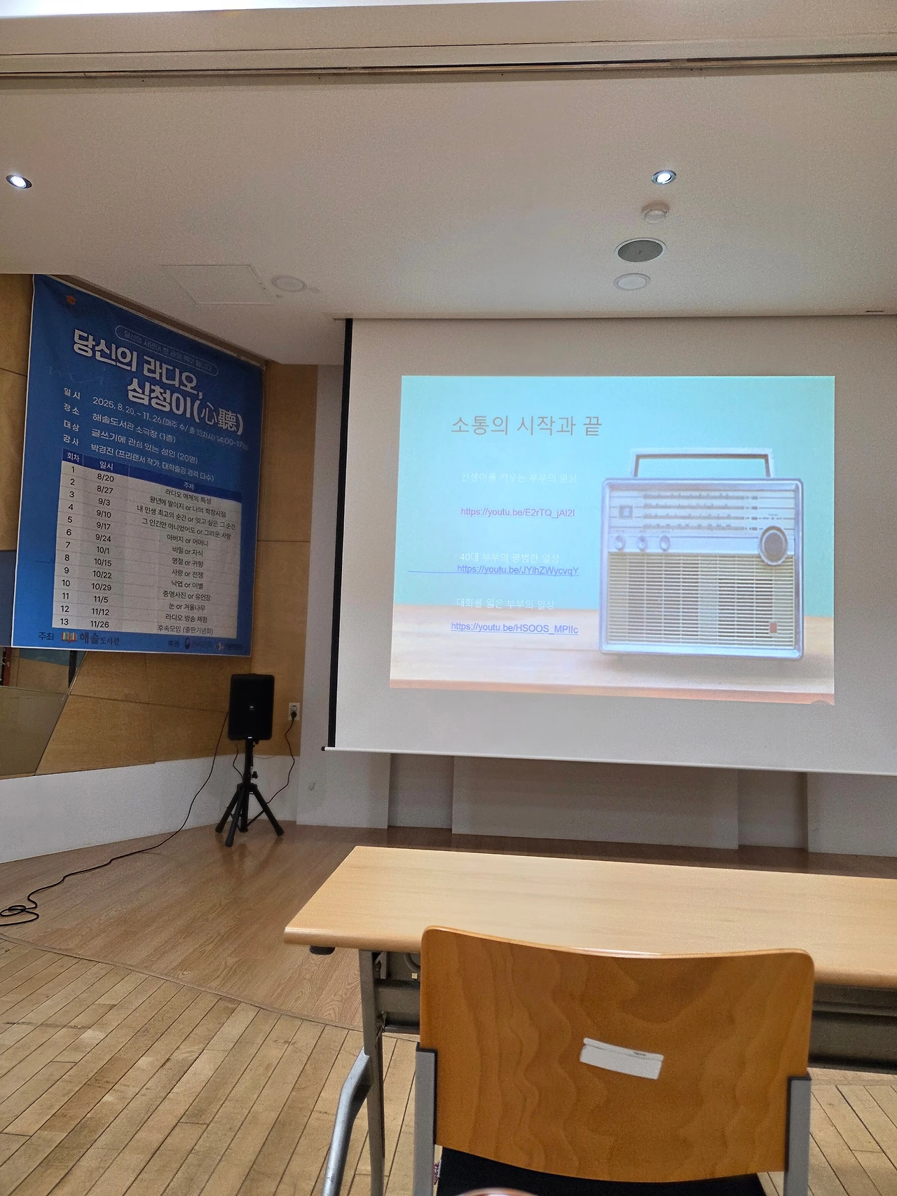 또 하나는 해솔도서관이 [지혜학교] 사업이 일환으로 진행하는 프로그램인 '당신의 라디오, 심청이(心聽)'이다. 방송국에 사연을 보내는 작가가 되어 글을 써보는 것이다. 여기서 <심청>은 아버지의 눈을 뜨게 하기 위해 인당수에 몸을 던진 <심청이>가 아니라, 마음 심(心)과 들을 청(聽). 곧, '마음을 듣다'는 의미다. 정말 꿈보다 해몽이라더니, 단어가 품고 있는 뜻이 너무 좋아 계속 되뇌게 된다.