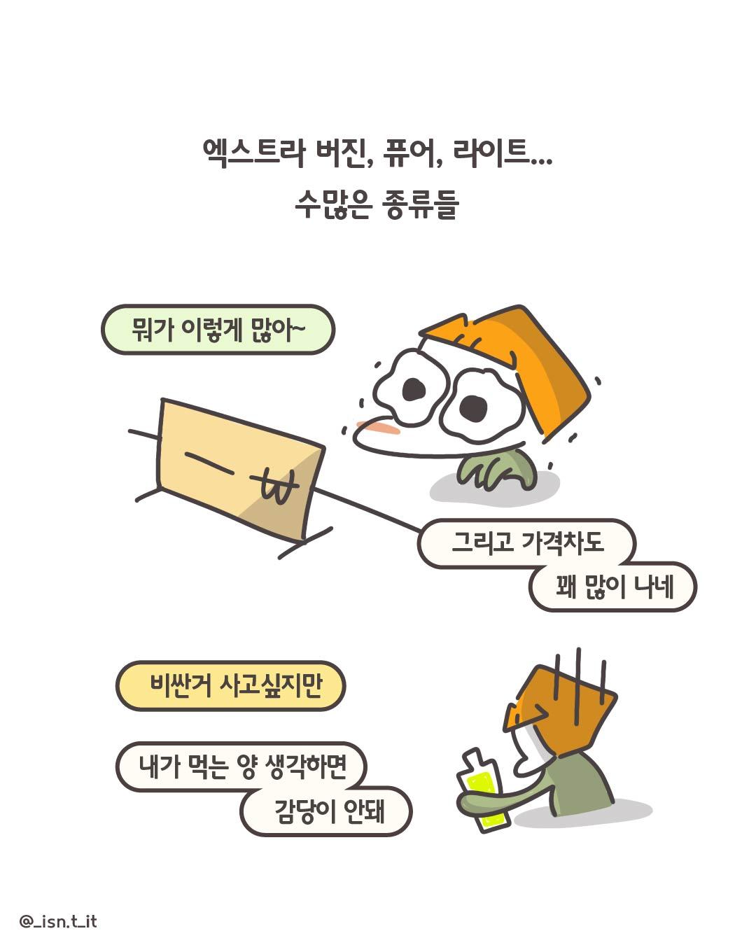 엑스트라 버진, 퓨어, 라이트… 수많은 종류들