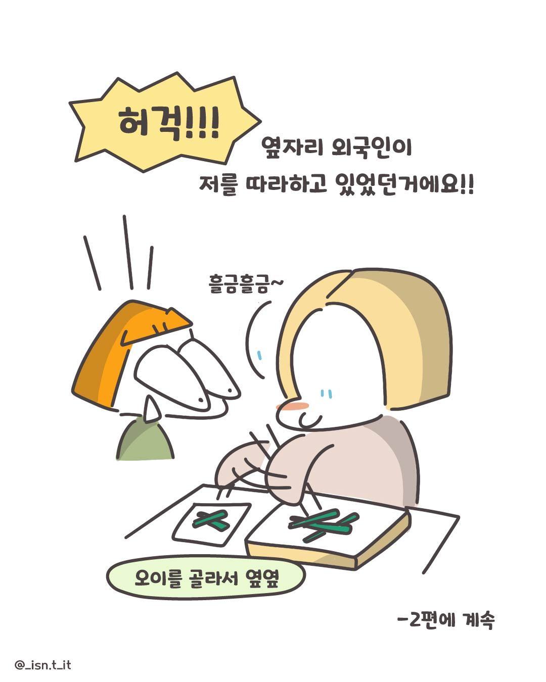 허걱!! 옆자리 외국인이 저를 따라하고 있던거에요!!