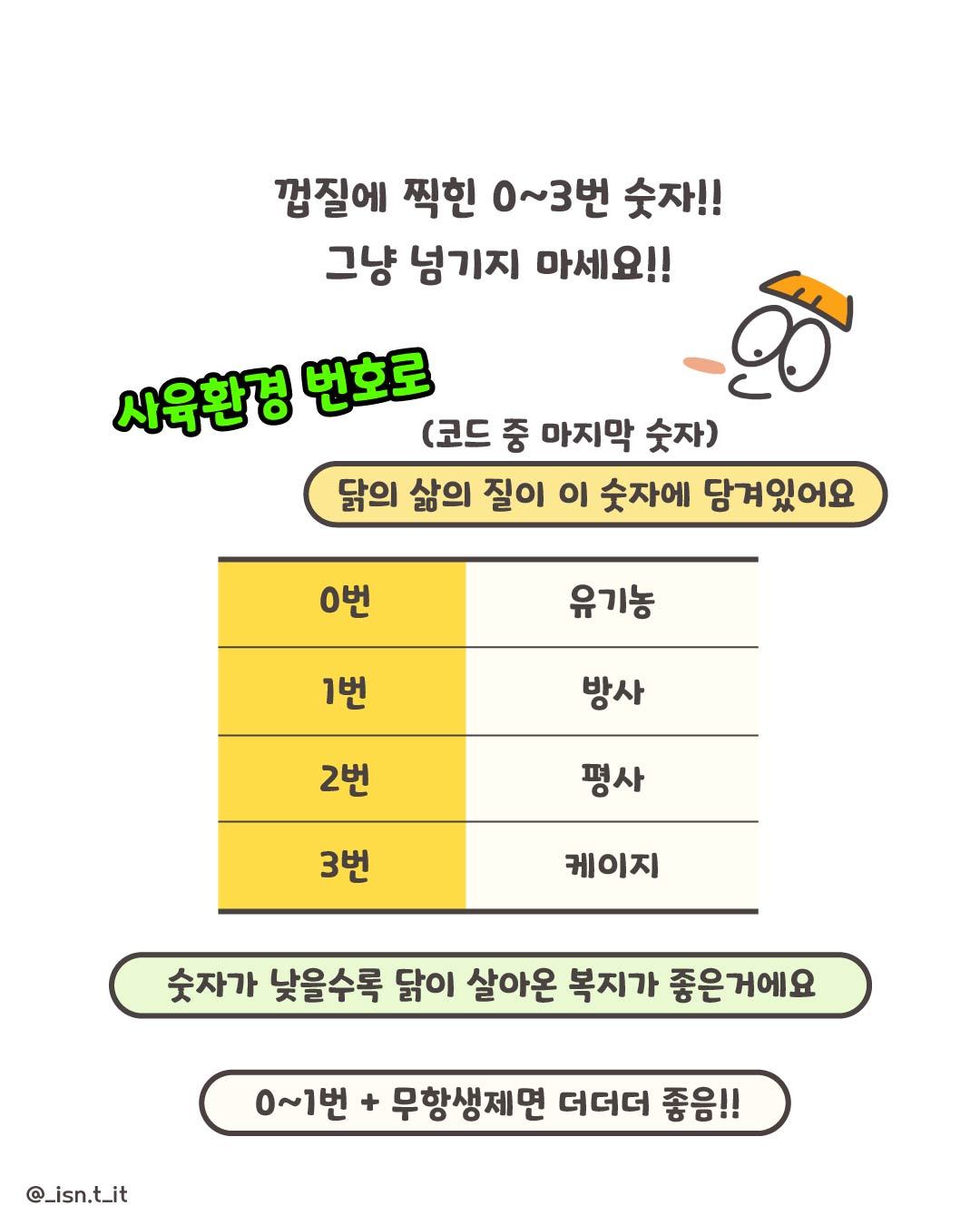 (사육환경 번호로~ 닭의 삶의 질이 이 숫자에 담겨있어요)