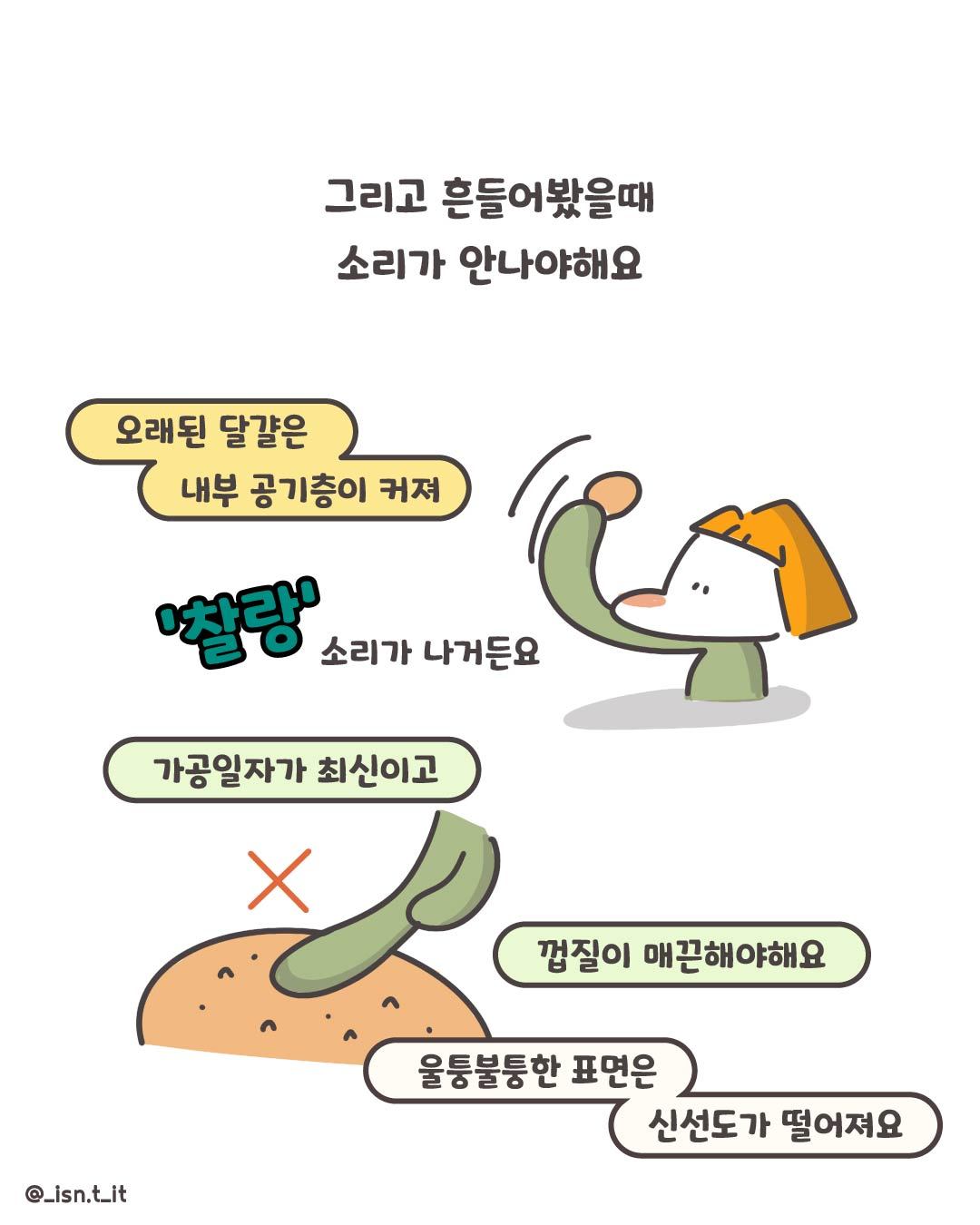 (가공일자가 최신이고, 껍질이 매끈한걸로 (울퉁불퉁한 표면은 신선도가 떨어져요)