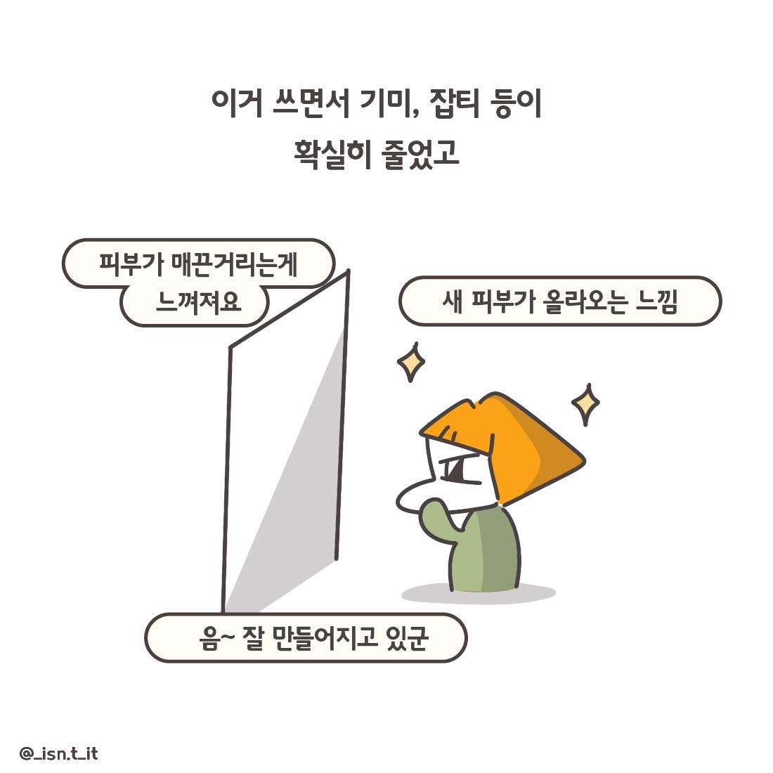 이거 쓰면서 기미, 잡티등이 확실히 줄었고 피부가 매끈거리는게 느껴져요