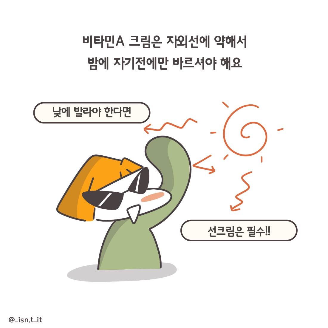 비타민A크림은 자외선에 약해서 밤에 자기전에만 바르셔야 해요