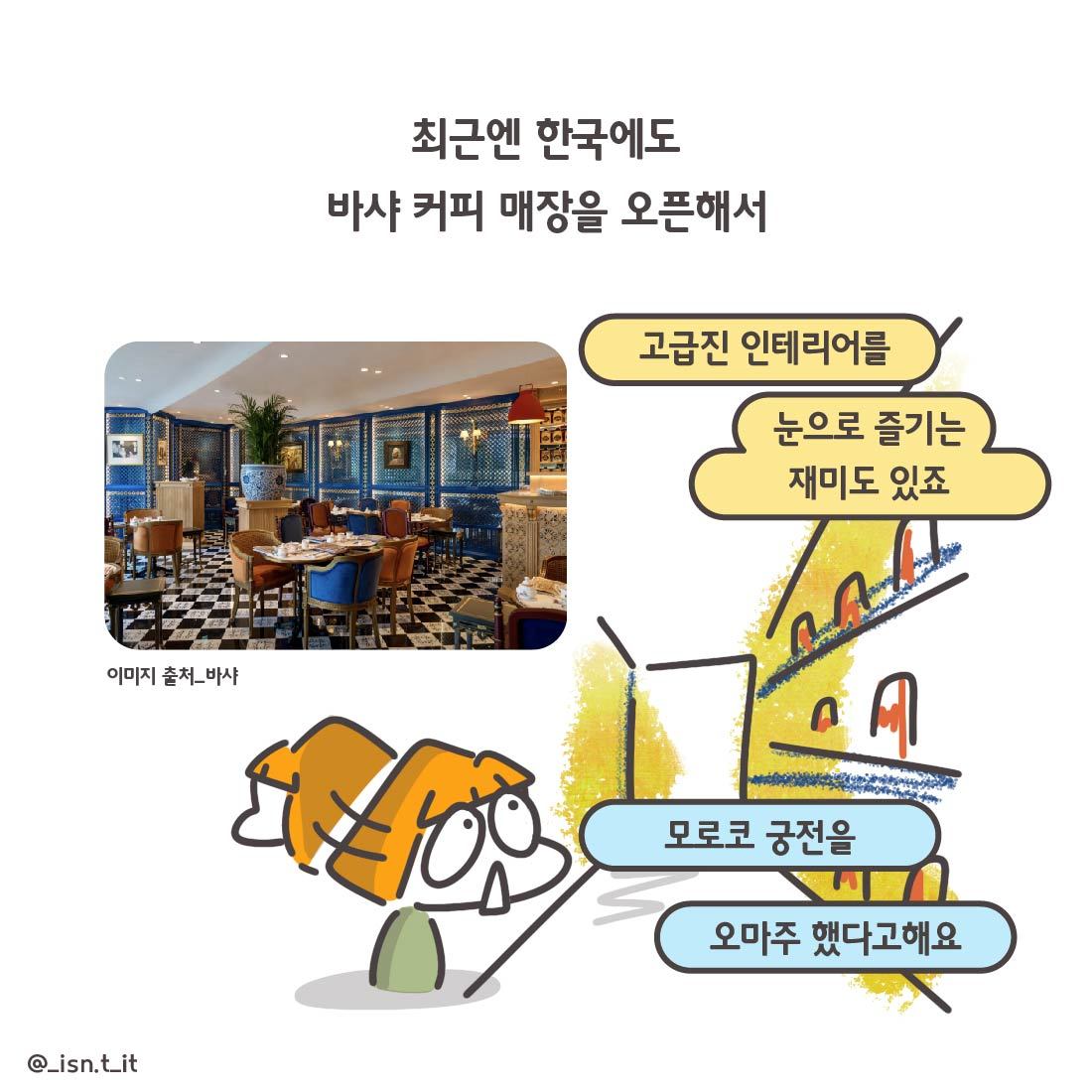 최근엔 한국에도 바샤 커피 매장을 오픈해서 (고급진 인테리어를 눈으로 즐기는 재미도 있죠. 모로코 궁전을 오마주했다고해요)