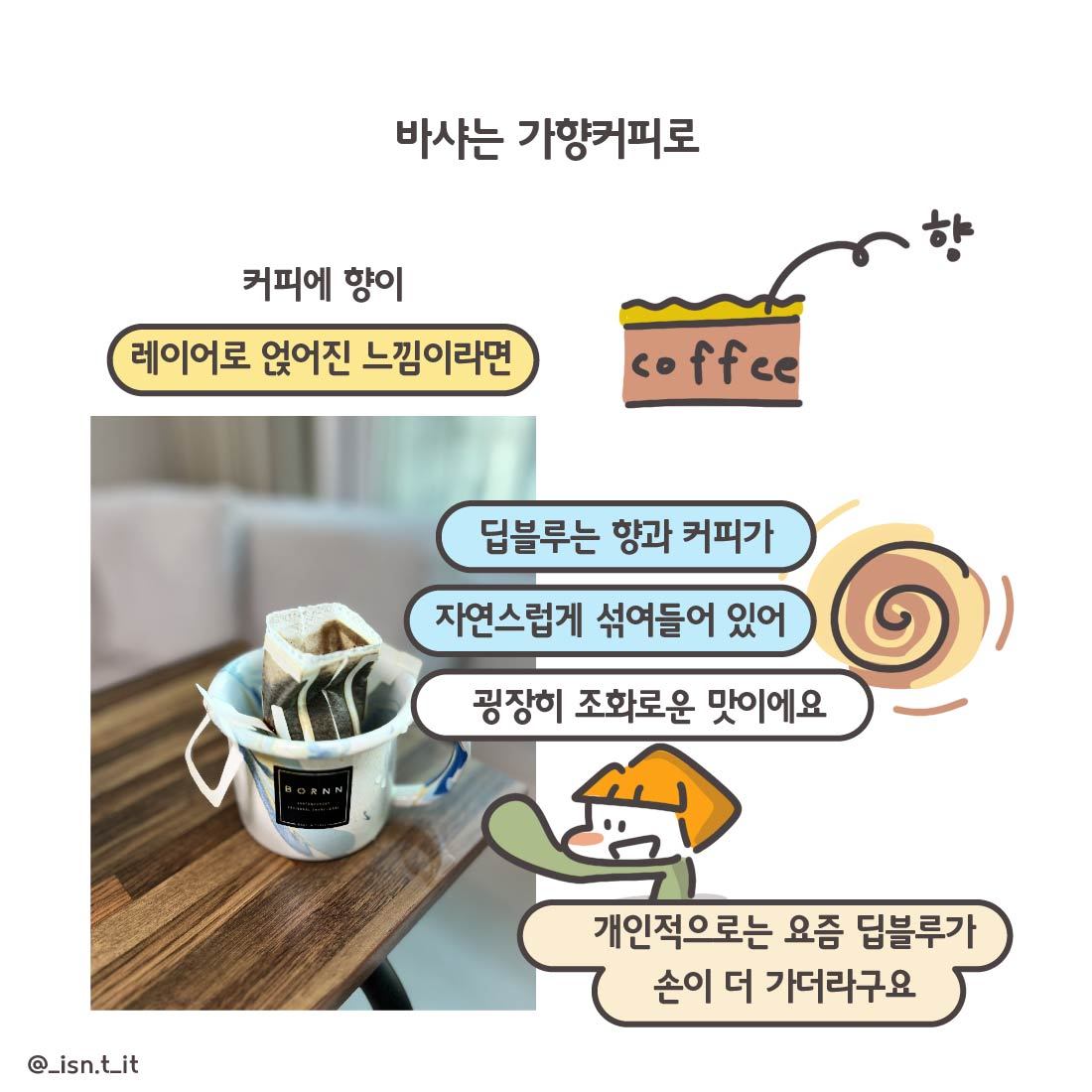 (딥블루는 향과 커피가 자연스럽게 섞여들어 있어 굉장히 조화로운 맛이에요 / 개인적으로는 요즘 딥블루가 손이 더 가더라구요)