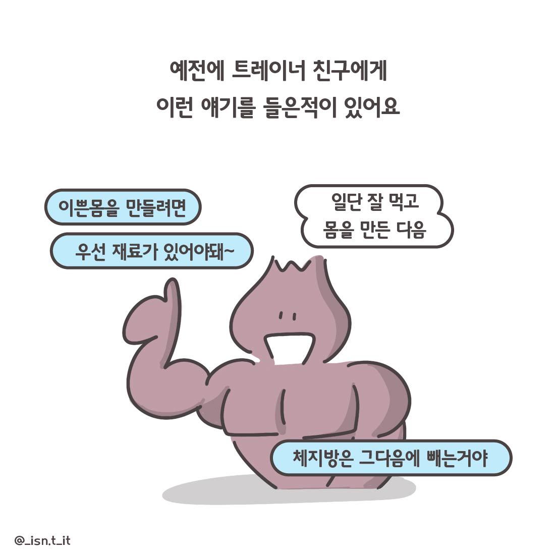 (이쁜몸을 만들려면 우선 재료가 있어야돼 / 일단 잘 먹고 몸을 만든 다음 체지방은 그다음에 빼는거야)