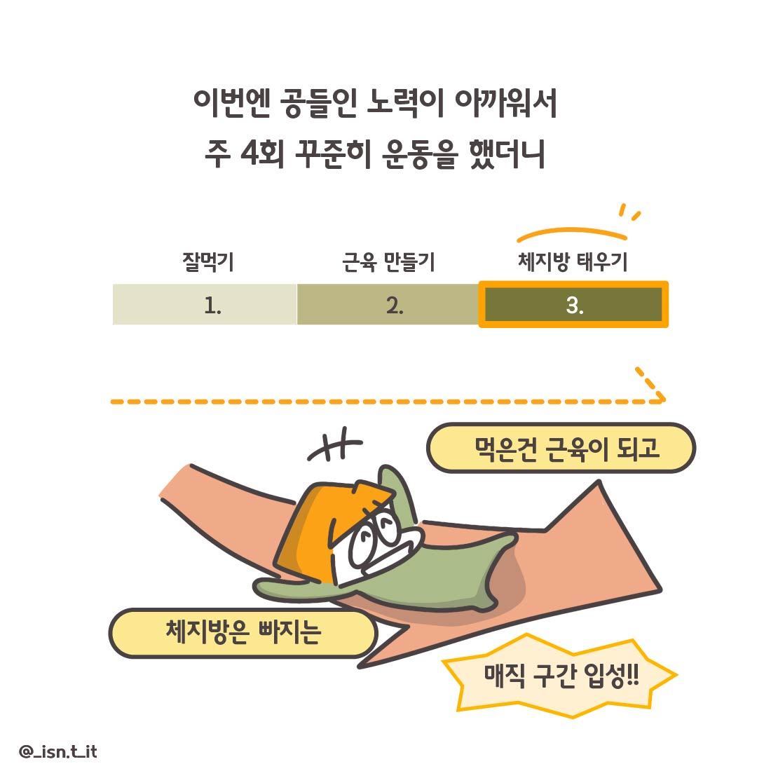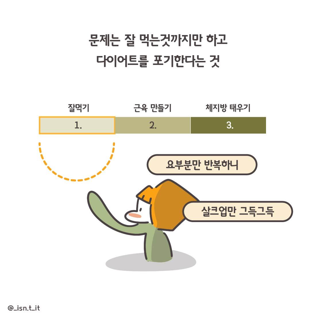 (1. 잘먹기 2. 근육 만들기 3. 체지방 태우기 / 요부분만 반복하니 살크업만 그득그득)