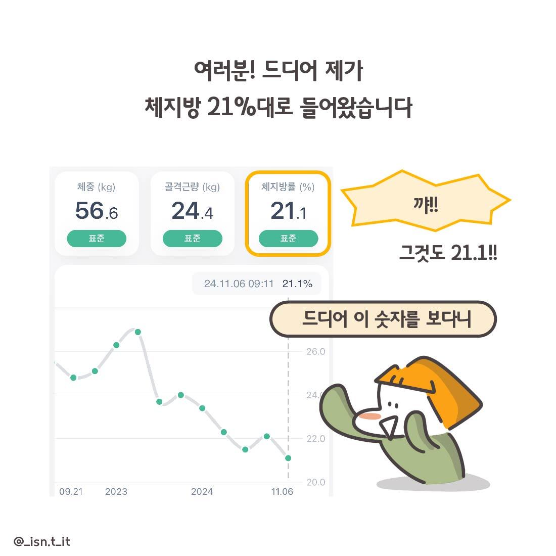 여러분! 드디어 제가 체지방 21%대로 들어왔습니다