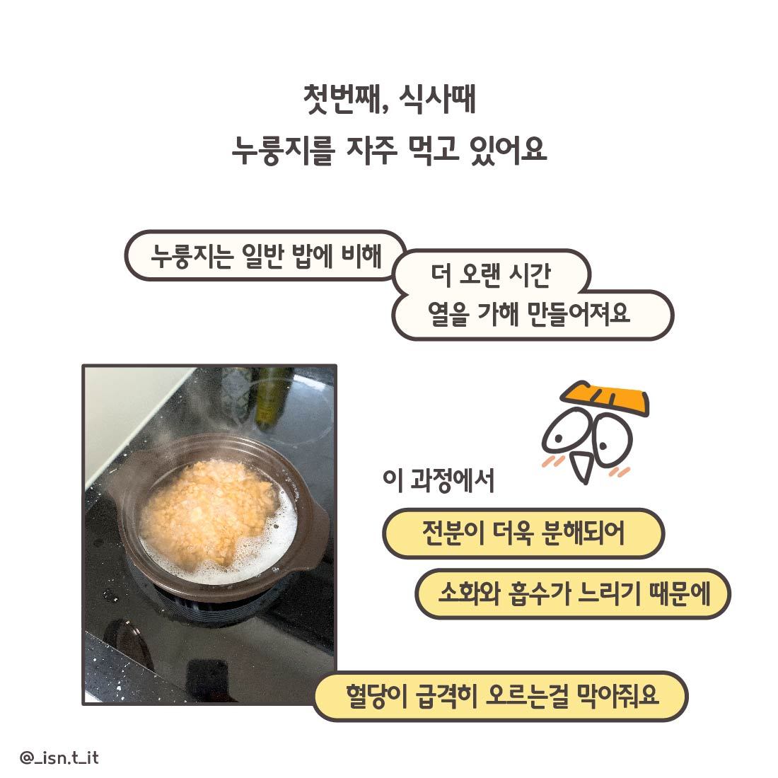 첫번째, 식사때 누룽지를 자주 먹고 있어요