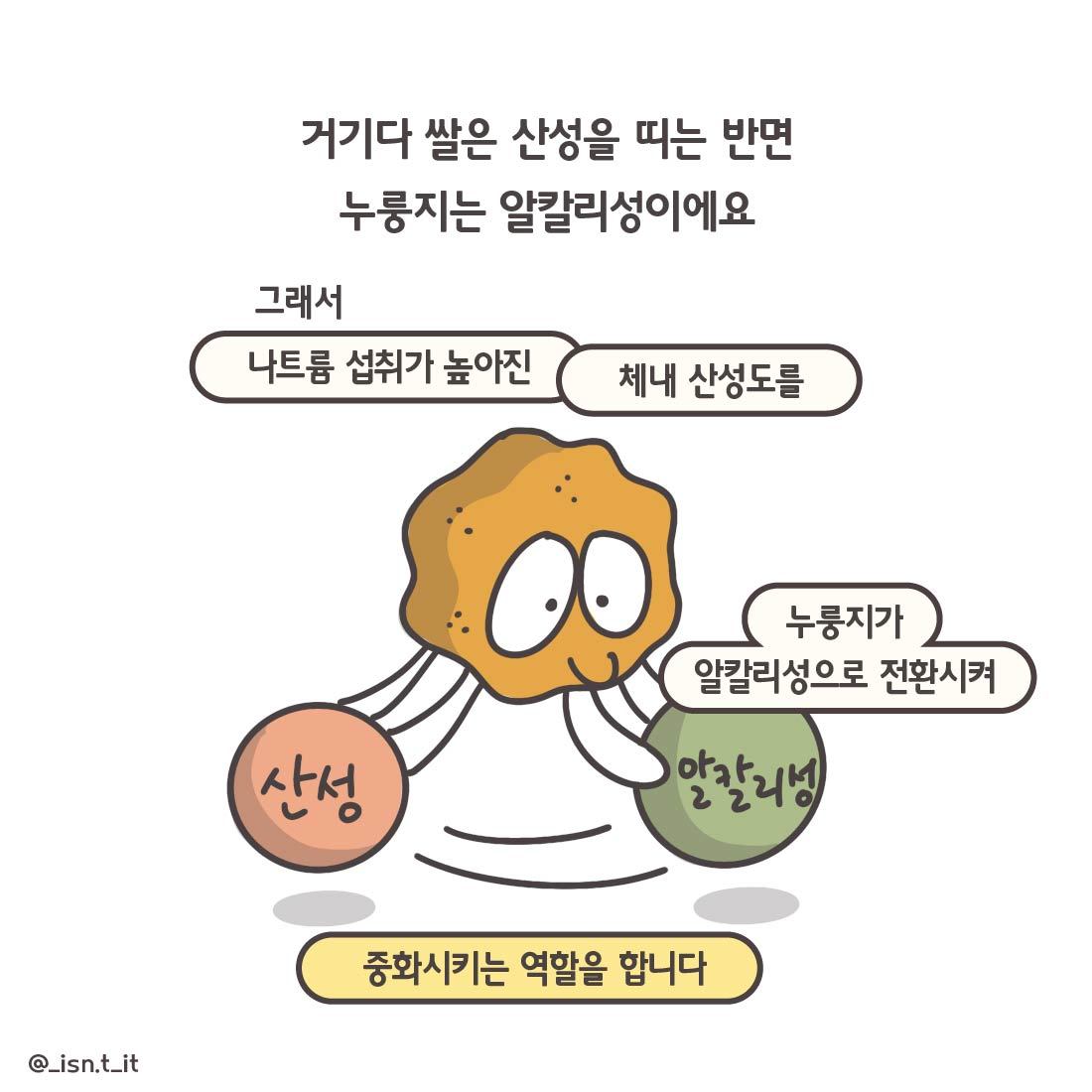 (그래서 나트륨 섭취가 높아진 체내 산성도를 누룽지가 알칼리성으로 전환시켜 중화시키는 역할을 합니다)
