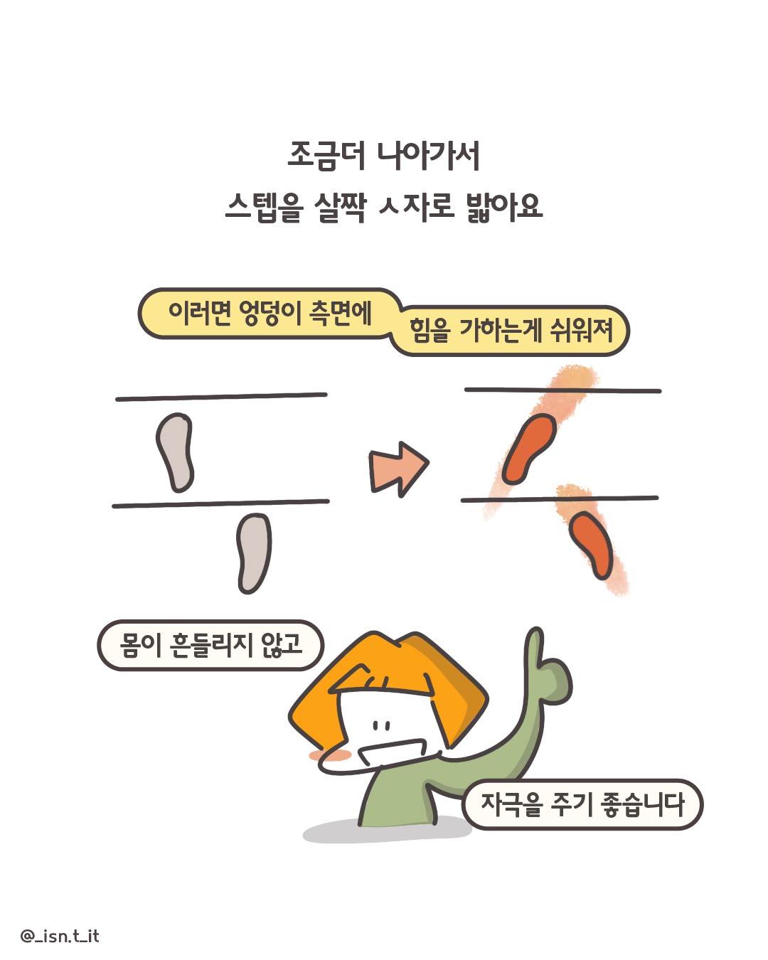 조금더 나아가서 스텝을 살짝 ㅅ자로 밟아요