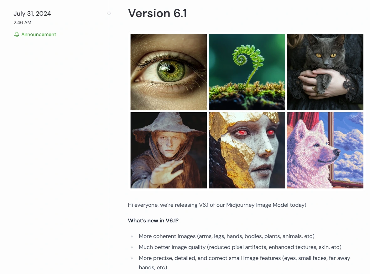 미드저니 홈페이지 Announcement