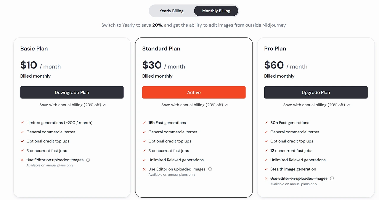 미드저니 홈페이지 Subscription