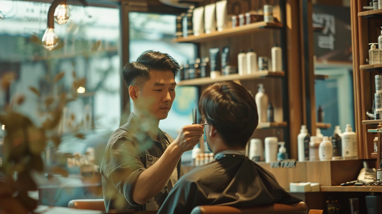 성진은 미용실 문을 나서며 시원한 바람을 맞는다. 머리가 바뀐 자신을 마치 다른 사람처럼 느끼며 거리로 걸음을 옮긴다.