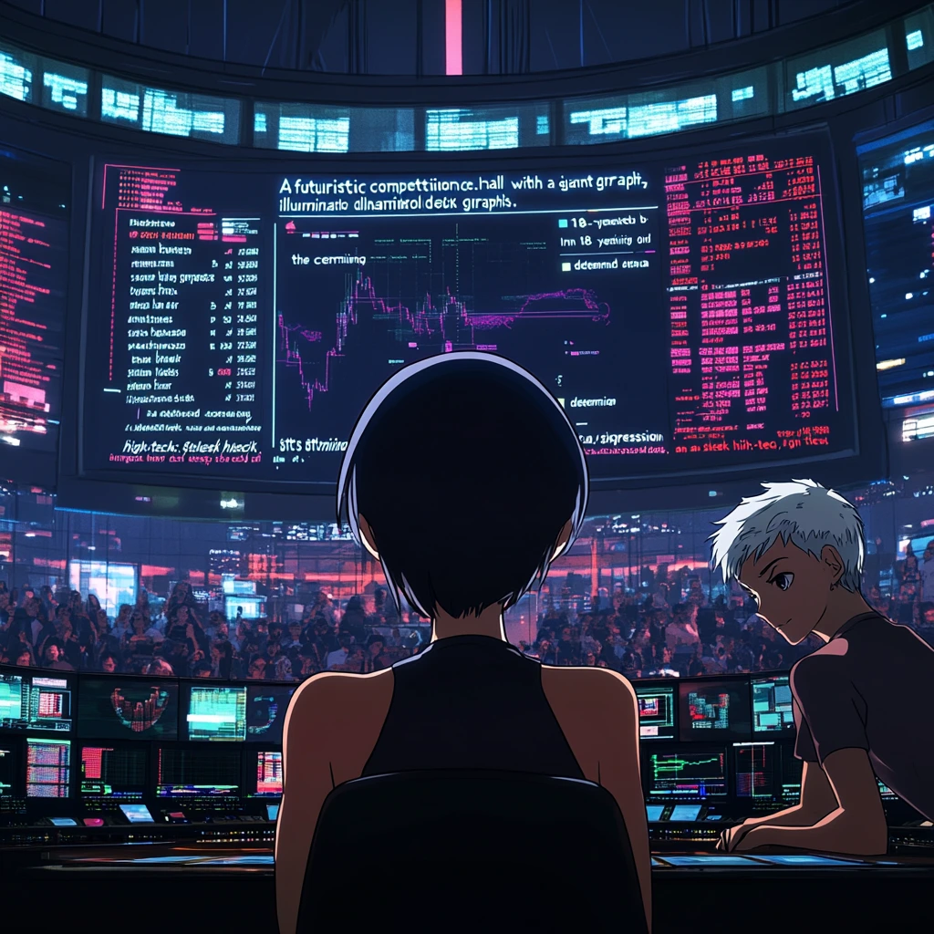 화면에는 실시간으로 변화하는 주식 시장 그래프가 역동적으로 펼쳐지고, 각 참가자의 이름이 순위와 함께 화면 한쪽에 떠올랐다.