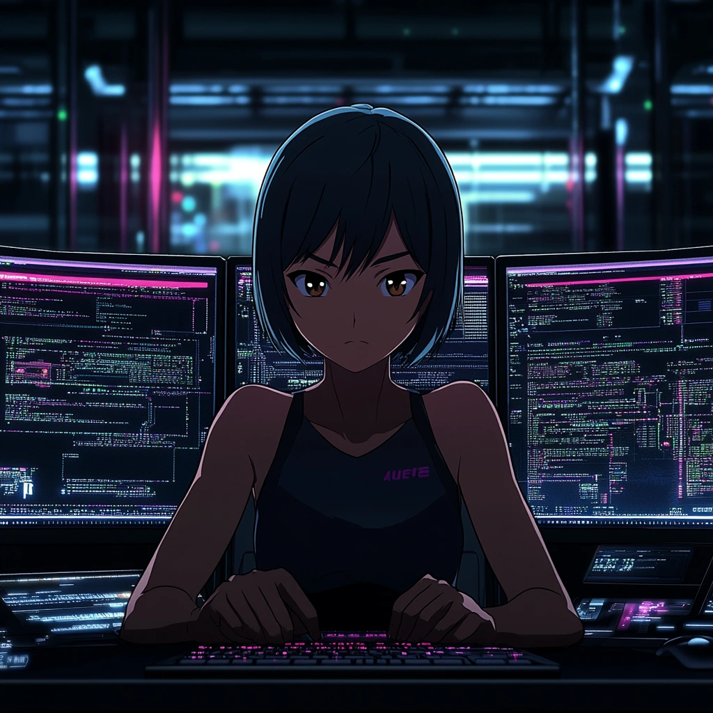 그녀는 속삭이며 손을 키보드 위로 올렸다.