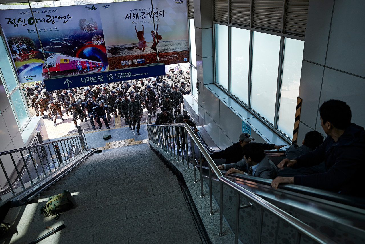영화 '부산행'은 대한민국에 존재하는 사회정치적 문제에 소홀하지도 않았다. 도시 곳곳은 초토화되고 있는데 담당 고위직은 "사태가 안정되고 있다"며 무책임한 브리핑만 반복하고 좀비들의 공격을 줄기차게 '시위대의 폭력행위'라고 보도하는 뉴스 화면은 절망감마저 안겨준다.