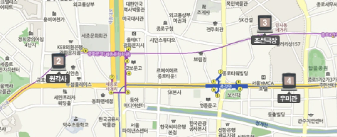 인사동은 당시 경성의 물리적인 중심이었다. 고종은 건양원년(1896)에 태화관이 있던 자리에 이곳이 한양(서울)의 중심지라는 것을 보여주는 중심점 표지돌을 세웠고, 그것이 전국 지번의 기준이 되었다. 하지만 어지간히 인사동을 자주 방문하는 사람이라도 이 사실을 몰랐을 거다. 왜냐면 웃기게도 이 표지돌이 건물 내부에 있기 때문이다. 하나로빌딩 1층에 있는 이 표지돌 아래에는 “이곳이 인사동 194번지로 예전에는 ‘순화궁’터였는데 그 후 삼일 만세 운동의 현장인 태화관이었고, 현재는 하나로 빌딩으로 변천된 유서 깊은 장소이다.