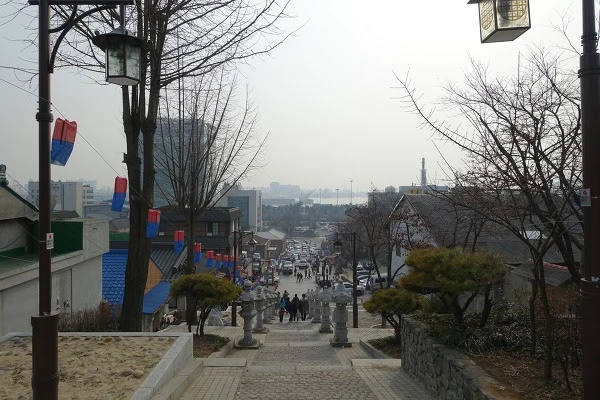 어리둥절할 필요는 없다. 일본 조계지 거리로 들어선 것일 뿐이다. 1883년에 인천항이 개항되면서 청나라 사람들뿐 아니라 일본인들도 모여 살게 되었다. 중국과 일본의 조계지가 삼국지 벽화거리 끝에 있는 계단을 경계로 나란히 생긴 것이다. 얼마나 선명한 경계를 긋고 싶었던지 자세히 들여다보면 계단 양쪽의 석등 모양마저 다르다. 그 계단 위에서 내려다보면 왼쪽으로는 정갈한 일본풍의 건물이, 오른쪽으로는 화려한 중국풍의 건물이 이어진다. 확연히 다른 두 지역을 왼쪽과 오른쪽에 끼고 한 계단 한 계단 걸어 내려가면 인천 앞바다가 내려다보인다.