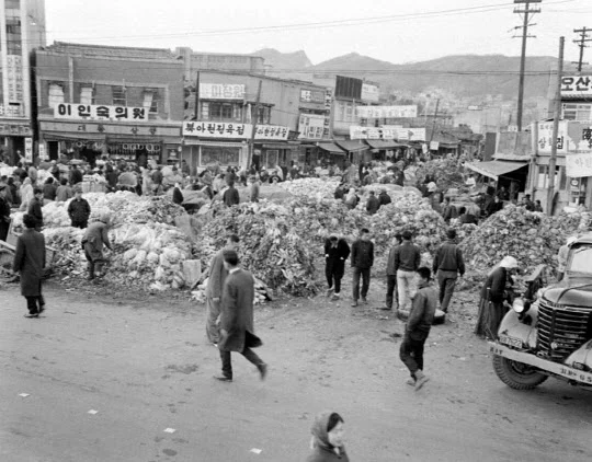 아, 혹시 궁금할까봐 조금 부연설명을 해보자면, 아현시장은 1930년대 초 서대문구 북아현동 굴레방다리를 중심으로 사람들이 모여 생활필수품들을 사고 팔면서 자연스럽게 만들어졌다. 그러다가 6・25전쟁을 거치고 1960년대에 들어서며 남대문시장과 어깨를 나란히 하는 대규모 시장으로 발전했는데 국가기록원에 전시된 사진을 보면 그 규모를 짐작할 수 있다.