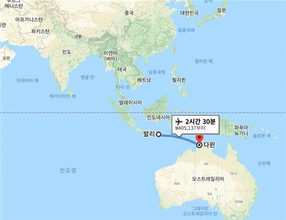 호주랑 인도네시아는 우리가 생각하는 것보다 훨씬 더 가까운 거리에 있다. 물론 인도네시아랑 호주 둘 다 꽤 큰 나라니까, 어느 도시에서 어느 도시로 가느냐에 따라 차이가 크다. 하지만 책에서 지명이와 함께 여행을 갔던 발리부터 호주 북부의 다윈이라는 도시까지는 비행기로 2시간 30분밖에 걸리지 않는다. 어쩐지 발리에 호주 분위기의 카페가 많더라니.