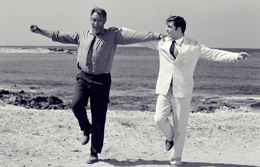 <그리스인 조르바>에서는 부모가 유산으로 남겨준 광산으로 새로운 사업을 펼치러 가던 주인공 앞에 갑작스럽게 조르바라는 인물이 나타난다. 조르바는 다소 거칠지만 동시에 순수한 열정을 가진 사람이다. 주인공은 다양한 경험을 가진 조르바와 함께 광산 사업을 시작한다. 하지만 큰 투자를 해서 인프라 공사를 하고 첫 시험운영을 하던 중 정말 대차게 망한다. 망연자실한 주인공 앞에서 조르바는 그래도 괜찮다며 춤을 춘다. 책으로만 보면 제법 잘 추는 춤이었을 듯하지만, 영화로 보면 탈춤에 가까운 몸짓이다. 땡볕 아래 해변에서 파란 셔츠를 입고 춤추다 보니 선명한 겨땀 자국은 덤.
