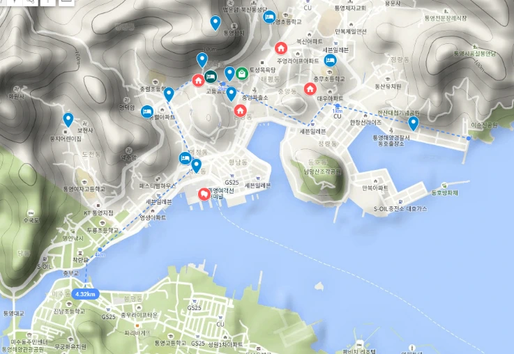 중간에 자꾸 뭘 먹어서 오랜 시간이 걸릴 것처럼 보이지만, 사실 이 코스를 다 걸어서 이동하더라도 반나절이면 충분하다. 김약국의 딸들의 등장인물이 무려 삼 대에 걸쳐서 살아온 공간이지만 느긋하게 걸어도 반나절이면 갈 수 있는 작은 동네인 셈이다.