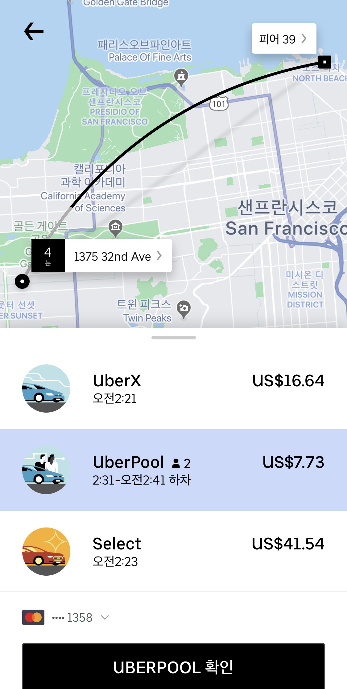 네가 원하는 위치에서 탑승해서 편해