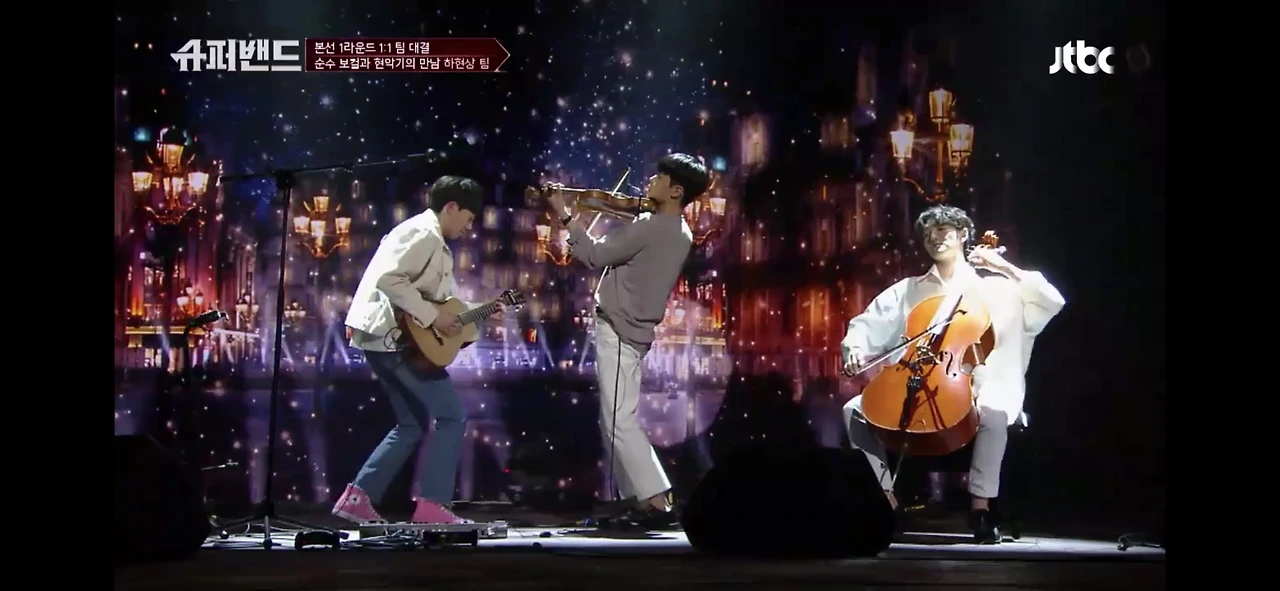 기존의 밴드 즉 보컬, 기타, 드럼 등의 부류와 굉장히 전통적인 집단인 클래식, 그리고 최근의 일렉트로닉 장르까지. 이들이 보여주는 서로 다른 모습 또 그것을 화합하는 과정 등을 보며 아.. 어떤 이상적인 분위기.. 그런 것을 본 것 같은데요.