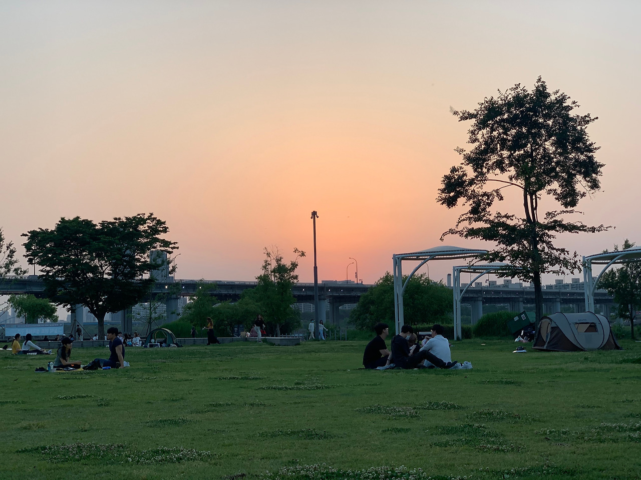 장소마다 다르긴 하지만 아이폰에는 황금 시간대가 있는 것 같아요. 예를 들어 한강은 오후 4시경에 약간 파스텔 톤이 나는 빛이 나오는데요. 어두운 밤이 되면 조명과 차량들로 멋진 모습을 연출해주기도 해요.