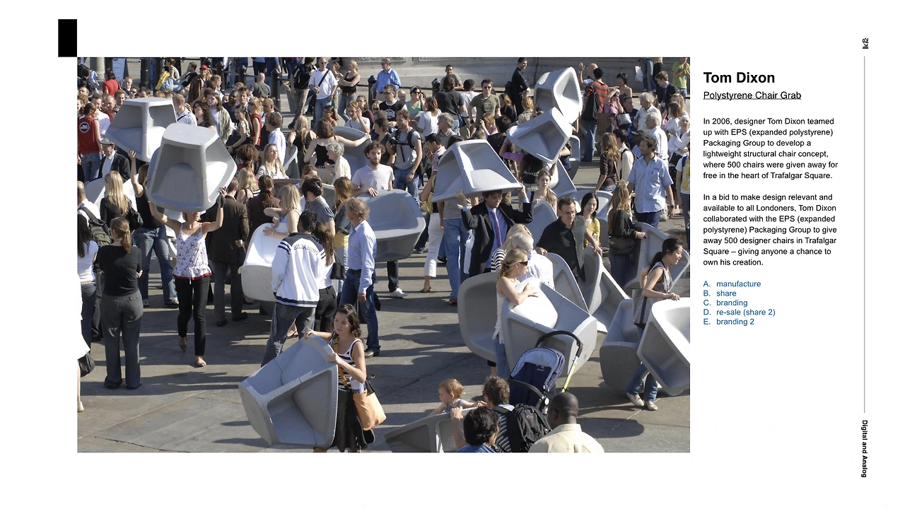 그런데 신기한 건 의자를 구매한 사람들이 재판매를 하기 시작했고, 그것은 다시 자신의 리브랜딩의 효과가 있었다고 말합니다. 온라인과 같이 무료로 배포한 의자가 사용자를 통해 자유롭게 활용되고 퍼져 나가기 시작한 것이죠.