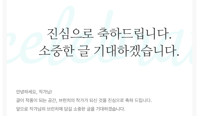 작가 신청 2일 만에 온 합격통보. 야호! 글을 쓸 수 있는 나의 공간이 생겼다. 바로 오늘부터 써 봅니다.