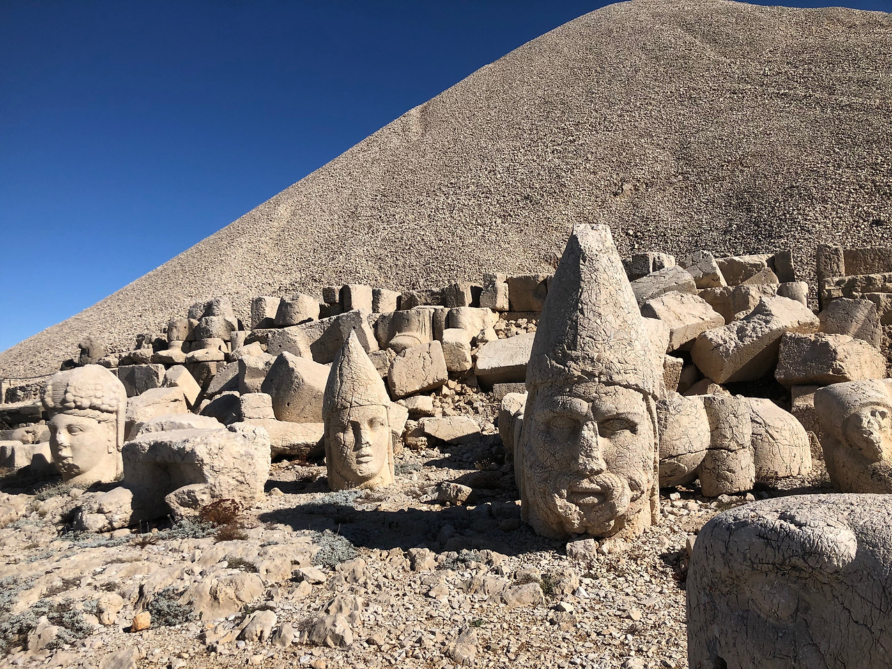 넴루트 다으(Nemrut Dag)는 터키 아디야만 주 아티트로스 산맥에 있는 콤마네게 왕국의 유적이다. 기원전 1세기경 아나톨리아 남동부, 콤마네게 왕국의 안티오코스 1세의 돌무지 무덤으로 산 정상에는 북, 동, 서 방향으로 테라스가 있고 북쪽과 동쪽에는 9m 높이의 거대 석상들이 있다. 석상은 모두 7개인데 신이 되고 싶었던 왕, 안티오코스 1세 자신과 아폴론-미트라, 티케(콤마네게의 다산의 여신), 제우스-오로마데스, 헤라클레스-아르타크네스 같은 동서양의 신들, 그리고 이들을 수호하는 독수리, 사자상이 있다. 원래는 의자에 앉아 있는 모습이었지만 2000년의 세월을 견디지 못한 석상의 머리는 아래로 굴러 떨어져 있었다. 시라아 북부와 유프라테스강 유역의 왕국이었던 콤마네게의 왕국은 페르시아와 마케도니아, 그러니까 동양과 서양 사이에서 교역을 했던 나라였다. 석상의 모습에서 볼 수 있는 것처럼 그리스와 페르시아의 신의 모습을 동시에 갖고 있다. 이는 동서양 문화가 혼재된 이중적인 터키 문화의 기원이 고대까지 거슬러 올라감을 잘 말해준다. 1987년 유네스코 세계문화유산으로 지정되면서 세계인의 문화유산으로 그 가치를 인정받은 만큼 죽기 전에 가봐야 할 유적지가 있다면 아마도 여기, 넴루트 다으(Nemrut Dag)가 아닐까 하는 생각이 들게 하는 곳이었다.