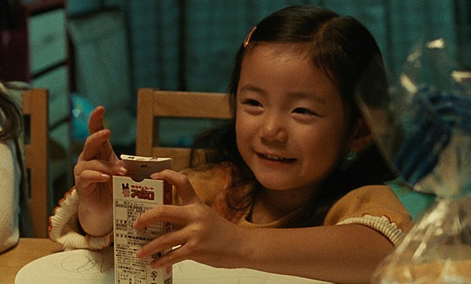 사실 히에이(영화에서 차남 역할)에게는 무슨 일이 일어날지 말하지 않고 찍었습니다. 우선 히에이에게 “무선 조종기로 놀고 있으렴”하고, 유야에게는 말로 대사를 가르치면서 화를 내며 무선 조종기를 걷어차 달라고 부탁했습니다. 히에이는 진심으로 울컥해서 “물건에 화풀이하는 거 아냐”라며 평소에 실제 어머니에게 듣는 말 그대로 유야에게 호통쳤습니다.