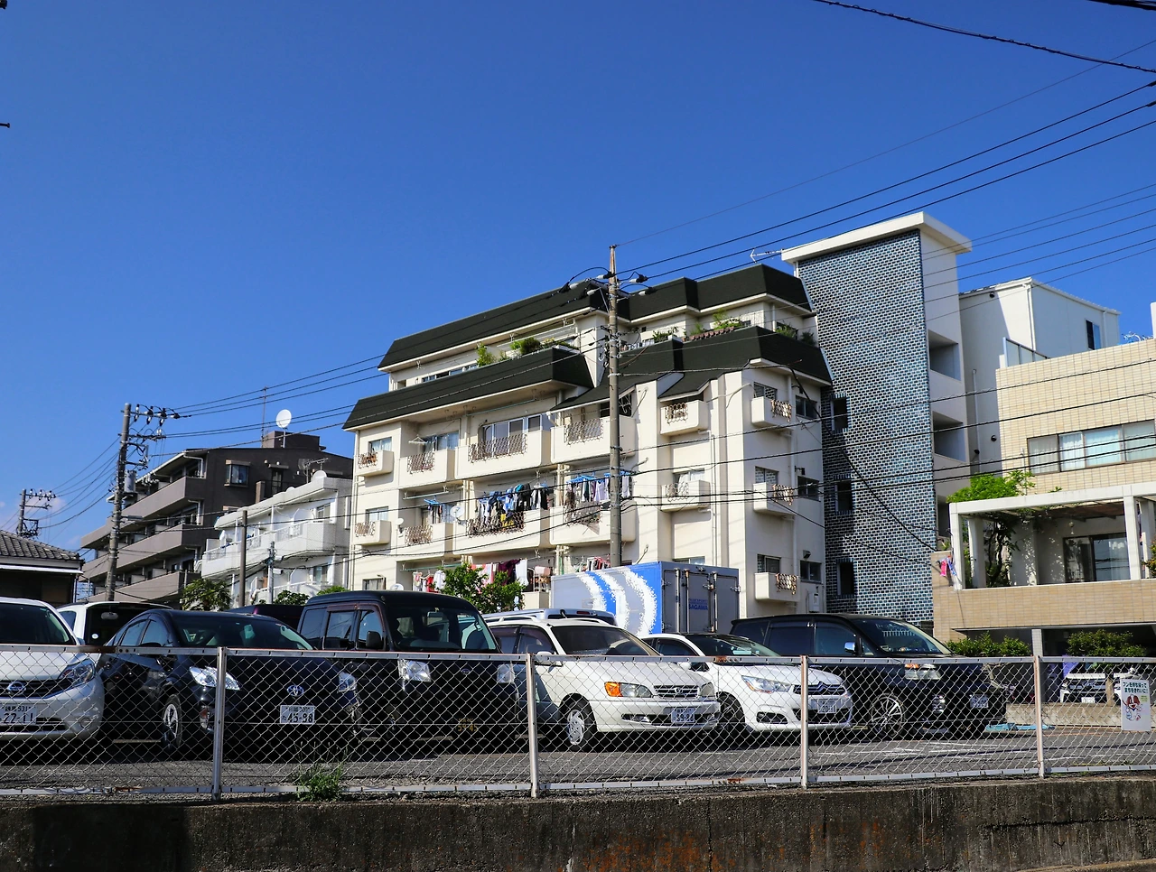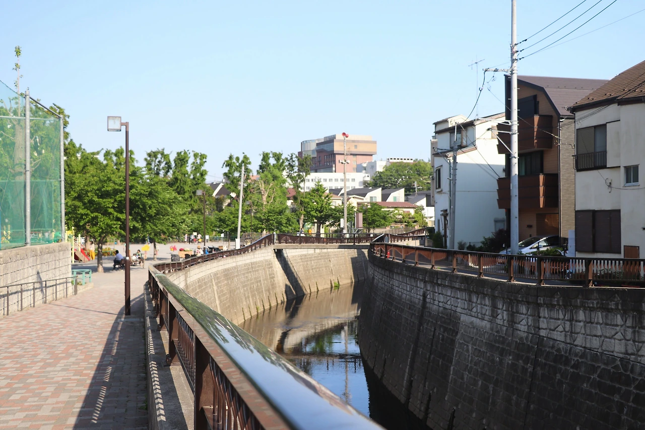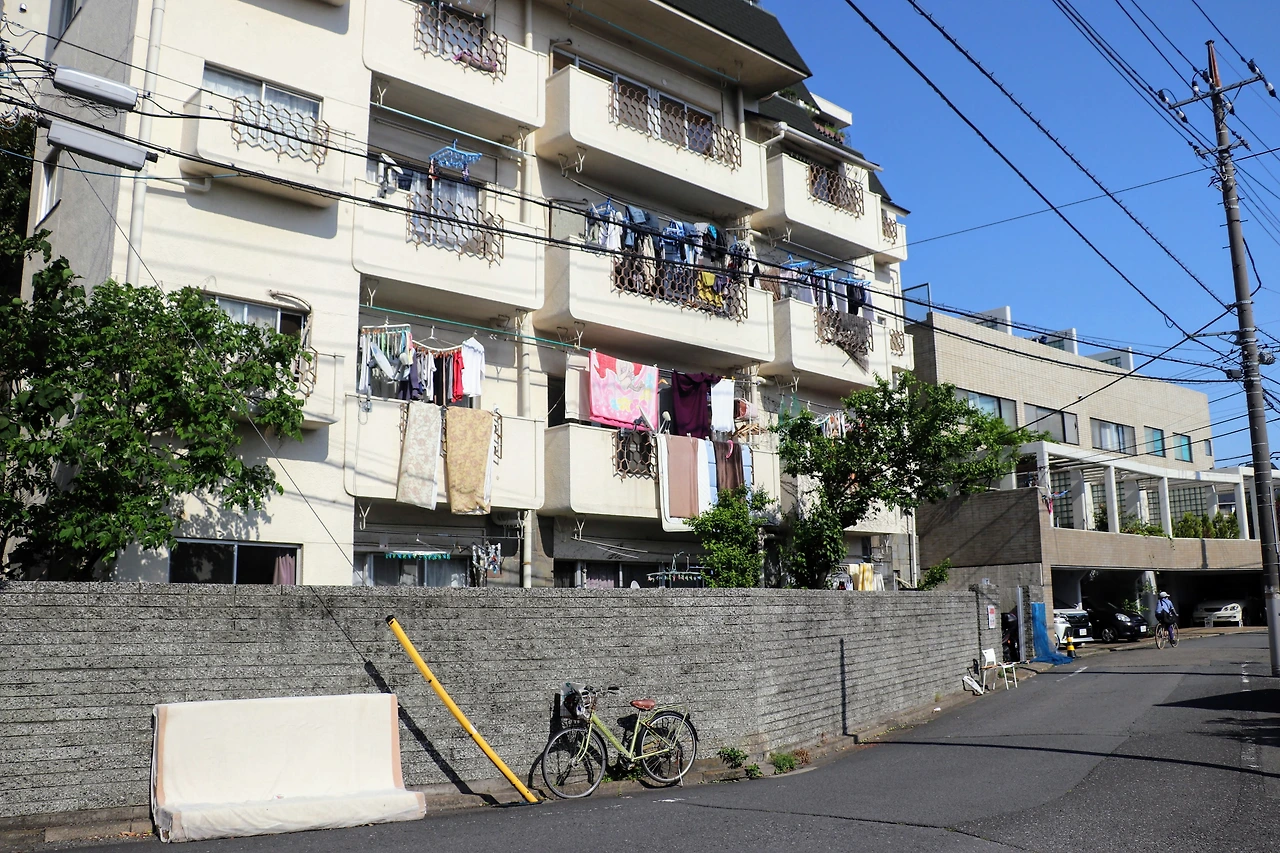 영화 속 네 명의 아이들이 생활하는 아파트는 도쿄 나카노구에 있다. 누마부쿠로라는 고즈넉한 역에서 내려 10분 정도 걸어간 곳이었는데 영화 속 모습 보단 훨씬 근사한 주거지였다. 아파트까지 걸어가는 길에 돌아본 마을 풍경이 굉장히 마음에 들어 살아 보고 싶단 마음까지 들었다. 한 줄기 하천이 흐르고 있었고 그 곁 산책로는 잘 정비되어 있다. 영화에서 아키라가 이 길을 걷는 장면이 종종 등장한다. 한 번은 잠깐 집에 짐을 챙기러 온 엄마와 함께 걷는데, 그때 엄마는 ‘다시 곤란해지면 전 아빠들(아이들의 아빠가 모두 다르다)을 찾아가 돈을 꾸란’ 이야기를 아무렇지 않게 내뱉는다. 마을엔 눈길을 끄는 으리으리한 주택도 있고, 세련된 새 맨션도 들어서 있었다.