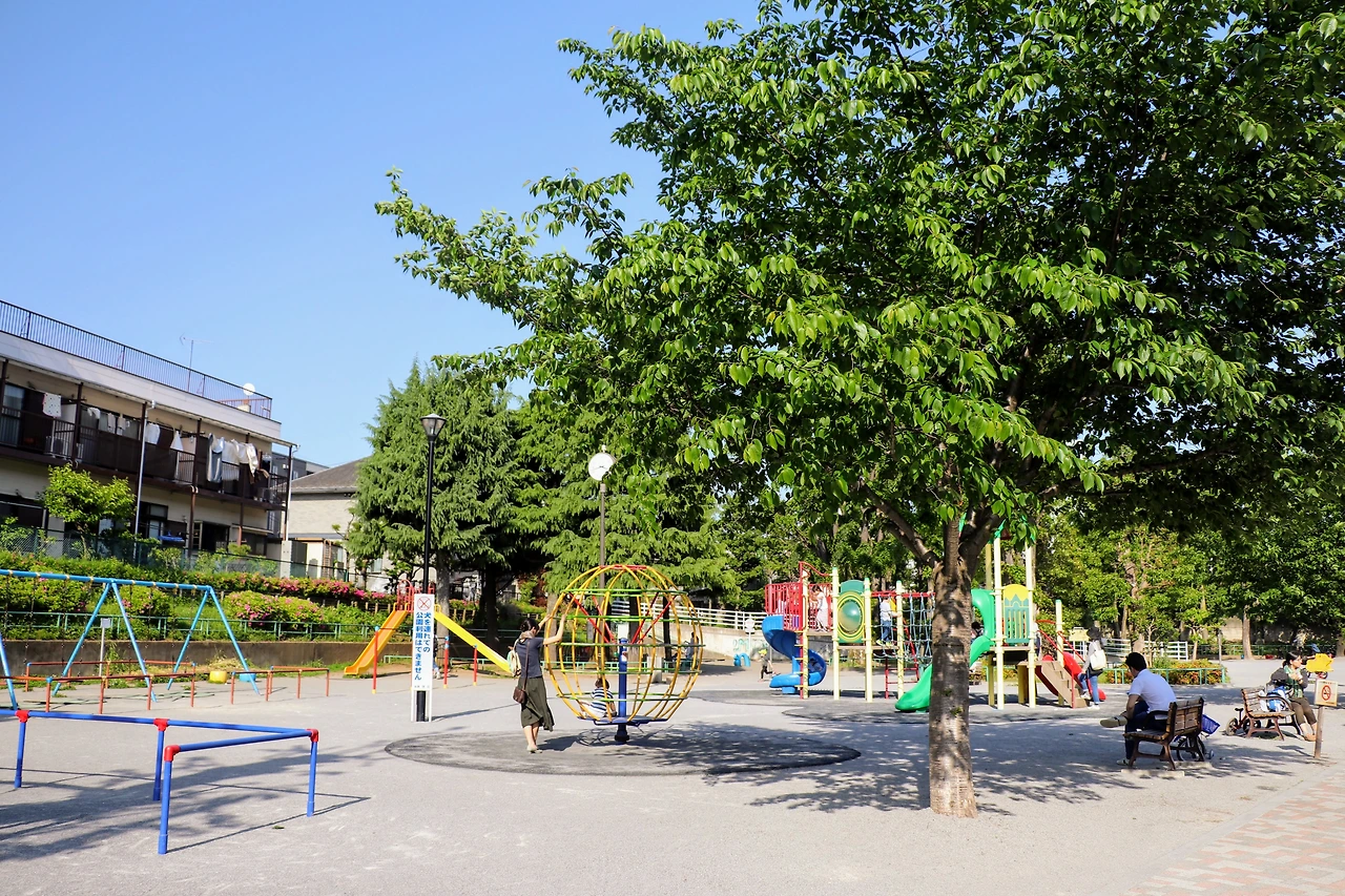 아파트에서 조금만 걸어가면 아이들이 물을 받기도 하고, 빨래도 하고, 놀면서 즐거운 시간을 보낸 공원이 나온다. 니시오치아이공원에는 <아무도 모른다> 속 시게루와 유키 나이 정도 되는 아이들이 엄마나 아빠와 함께 따뜻한 휴일 오후를 보내고 있었다. 가정적인 분위기로 충만해서 영화 속 네 남매가 이곳에서 빨래를 하고 있다면 굉장한 위화감이 느껴질 것 같았다.