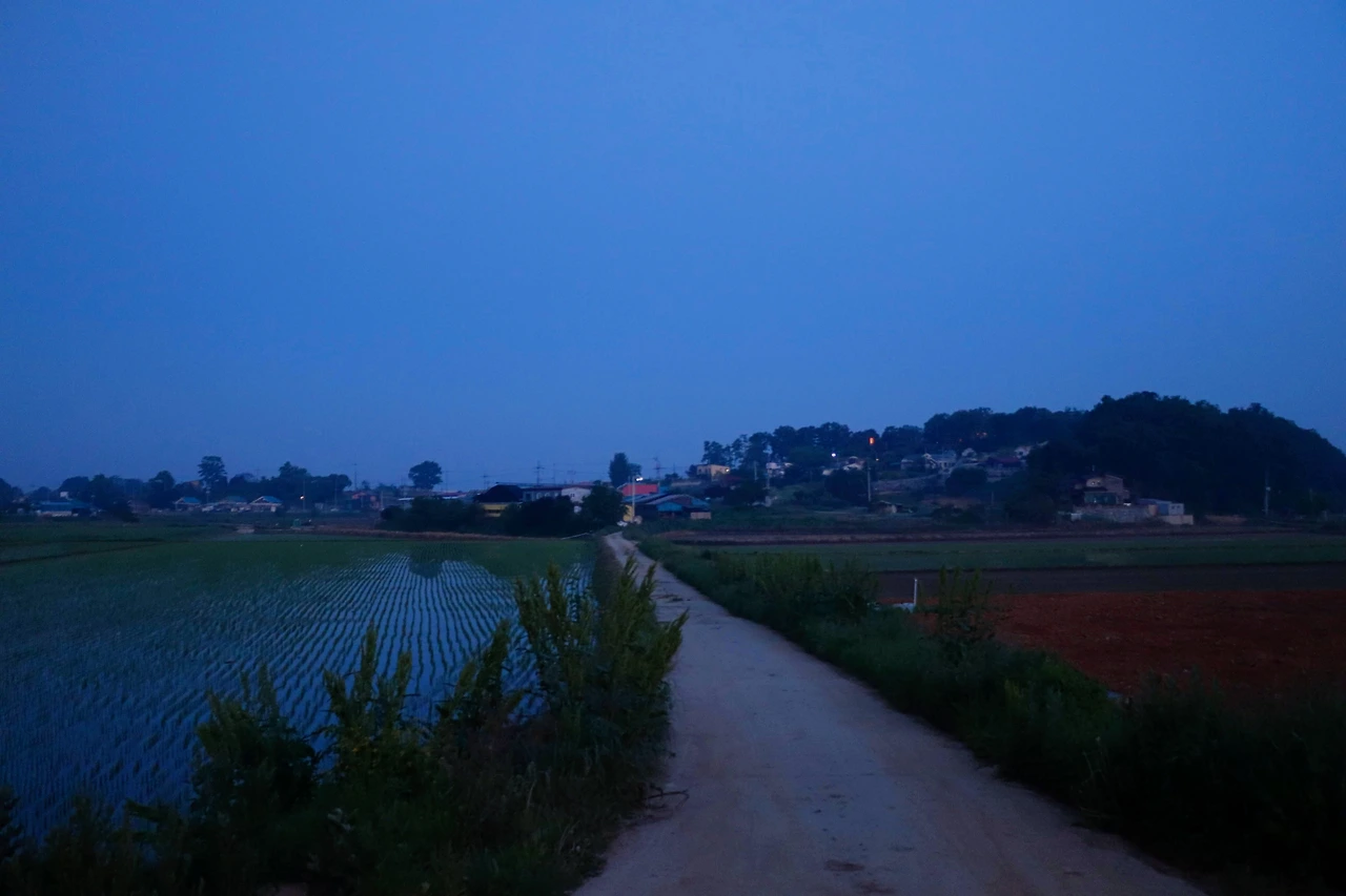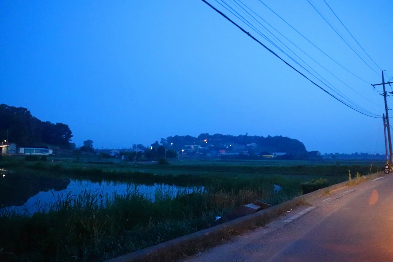 아침잠이 많은 내가 새벽 세시 반에 일어나 70km 거리를 달려 도착한 곳은 파주 만우리. 종수의 집이 있는 마을로, 임진강을 사이에 두고 북한과 마주 보고 있다. 영화에 대해 다룬 기사를 읽다가 계속해서 신경이 쓰이는 단어가 하나 있었다. “매직 아워(Magic Hour).” 이 ‘마법의 시간’은 해 질 녘과 동틀 녘을 지칭하는 말이라고 하는데, 카메라로 들어오는 빛이 부드러워 아름다운 화면을 만들 수 있는 시간대라고 한다. 《버닝》의 절반 이상이 하루에 얼마 주어지지 않은 이 시간을 기다려 찍은 화면이라고 한다. 새로운 단어를 알게 되니 내가 이제까지 찍은 사진 중 정말 마음에 드는 하늘색이 담긴 몇 컷이 떠올랐다. (언젠가 책을 낸다면 그 색을 담은 사진이나 그림을 표지로 삼고 싶었다. 정작 《다정한 여행의 배경》의 표지를 선정할 때 잊어버리고 말았지만.) 그래서 해가 뜨기 전에 만우리에 도착해야 했던 것이다. 다른 이유는 없었다. 매직 아워에 깔린 배경을 만나야 했다. 서두른 덕분에 만우리 근처에 도착했을 때까지도 주변은 어두컴컴했다. 우리를 가장 먼저 맞이한 것은 고양이 한 마리였는데, 총총 뛰어가는 모습이 고양이답지 않아서 청설모나 다른 동물인 줄 알았다.