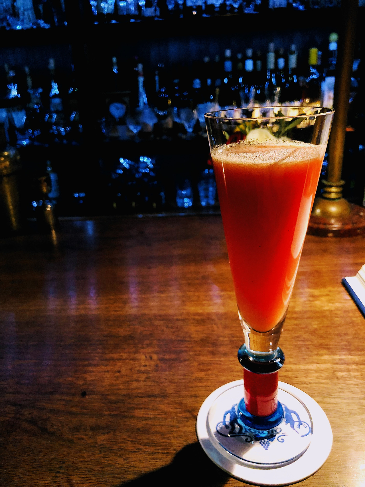한 잔에 2000엔 가까이하는 블러디 메리는 생토마토를 직접 짜서 만든다고 한다. 매우 신선한 토마토를 사용하는 듯했다. 처음엔 채소의 향기가 나더니 그 끝에 매우 달콤한 향이 나기 시작했는데, 친구가 오랜 고민 끝에 주문한 칵테일에서 나는 향이었다. 초콜릿과 달걀이 들어간 칵테일로 따뜻하게 만들려면 꽤 손이 많이 가기 때문에 손님이 많을 때 주문을 하면 조금 곤란하단다. 마침 손님이 우리밖에 없으니 괜찮다고.