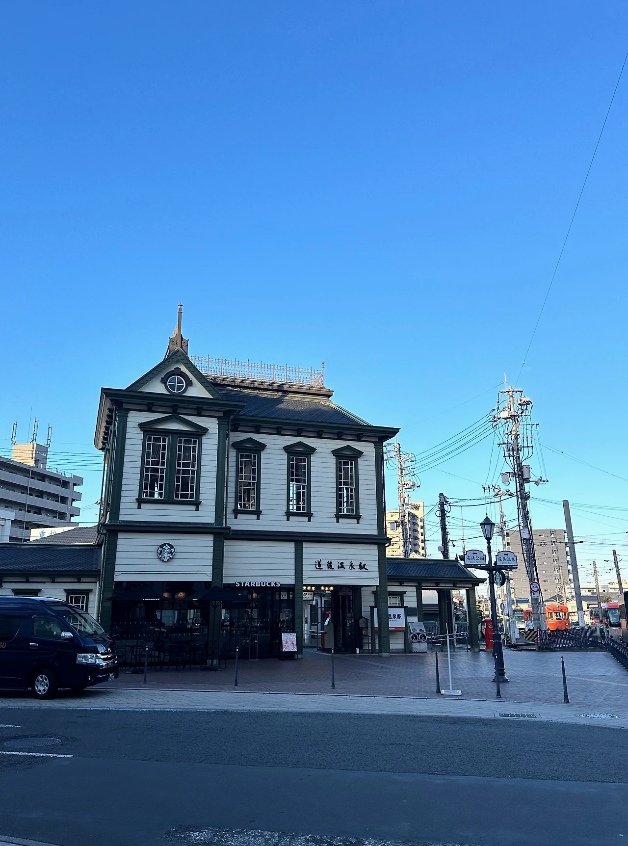 마쓰야마는 길을 걷다 보면 벌써 꽃봉오리를 열기 시작한 성격 급한 꽃나무들을 만날 수 있을 정도로 이미 봄이 시작되어 포근하긴 했지만 머무는 내내 흐린 날씨여서 조금 울적한 마음이 들었다. 그러다 떠날 때가 되니 파란 하늘로 뒤덮인 온천마을의 아침이 밝았다. 이 풍경으로 마을을 기억하고 싶어 아침 온천욕을 하기 전 산책에 나섰다. 도고공원은 밖에서 볼 때보단 규모가 꽤 큰 공원이었다. 공원을 한 바퀴 정도 돌아본 후 마을 구석구석을 걸었다. 등교 시간이었다. 나쓰메 소세키의 학생들 혹은 소설 속 도련님을 괴롭힌 학생들이 입었을 법한 옛날 디자인의 교복을 입고 학교로 향하고 있는 아이들이 보였다.