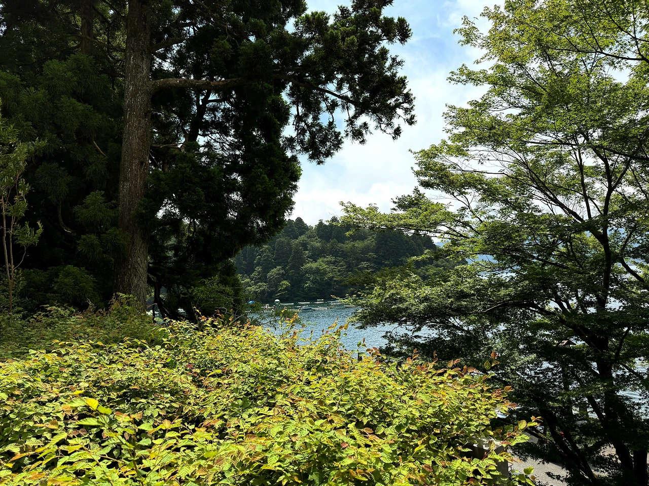 역전 뮤지엄에서 나와 어슬렁어슬렁 걸어, 소설의 배경인 야마노 호텔까지 간다. 중간에 약 500미터 정도 되는 삼나무 산책로도 있다. 키 큰 삼나무들이 시원시원하게 뻗어 있어 무더위를 막아준다. 삼나무길에서 빠져나오면 아시노호가 시원하게 펼쳐져 있다. 후지산 뷰포인트라 불리는 스폿에 서 보아도 후지산은 보이지 않는다. 날이 그리 흐리지 않았는데도 보지 못한 아쉬움을 뒤로한 채 목적지로 향했다.