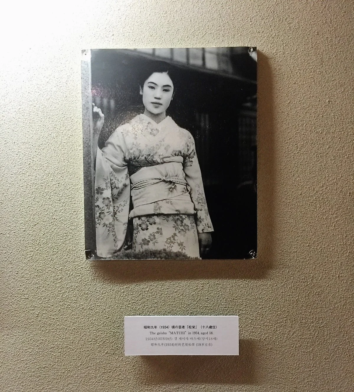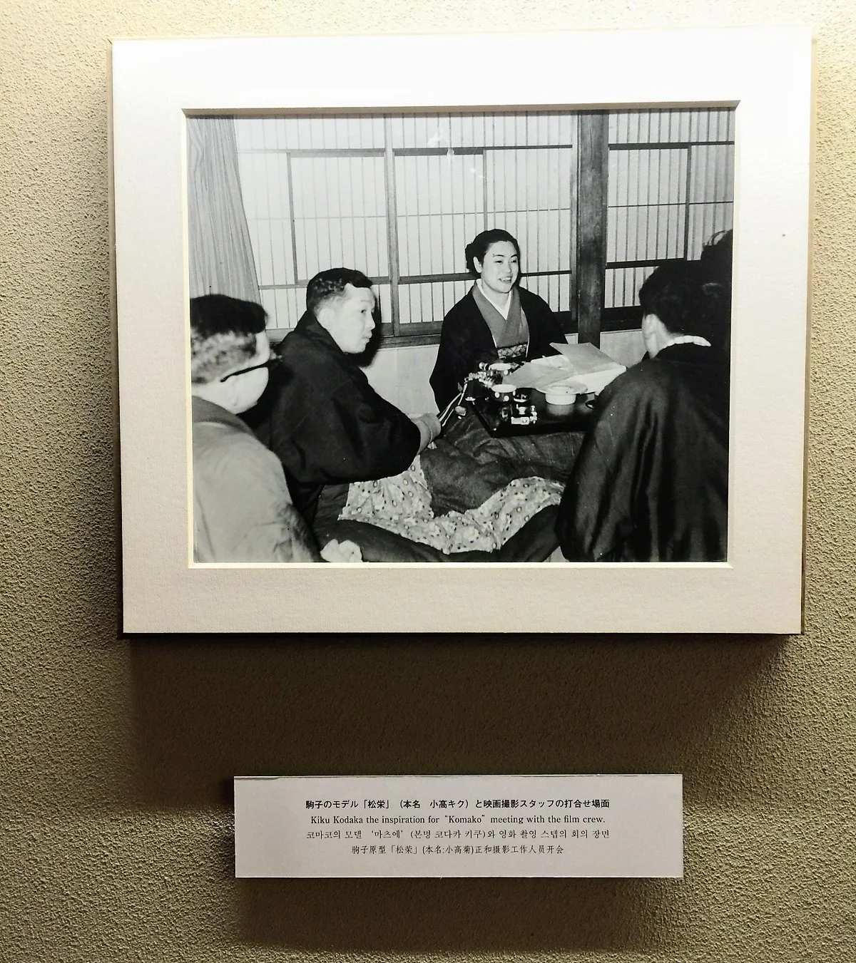 료칸 2층에는 이제는 없어진 가와바타 야스나리가 머문 방이 재현되어 있다. ‘가스미노마 かすみの間’라는 이름을 가진 방이다. 옆에는 자료관이 꾸려 있다. 작가와 작품을 입체적으로 이해하기 좋은 공간이다. 눈길을 끄는 것은 당연 고마코의 실제 모델인 마쓰에 (본명 : 고다카 키쿠 小高キク)의 사진. 대단한 미인은 아니지만 확실히 관능미가 흘렀다.