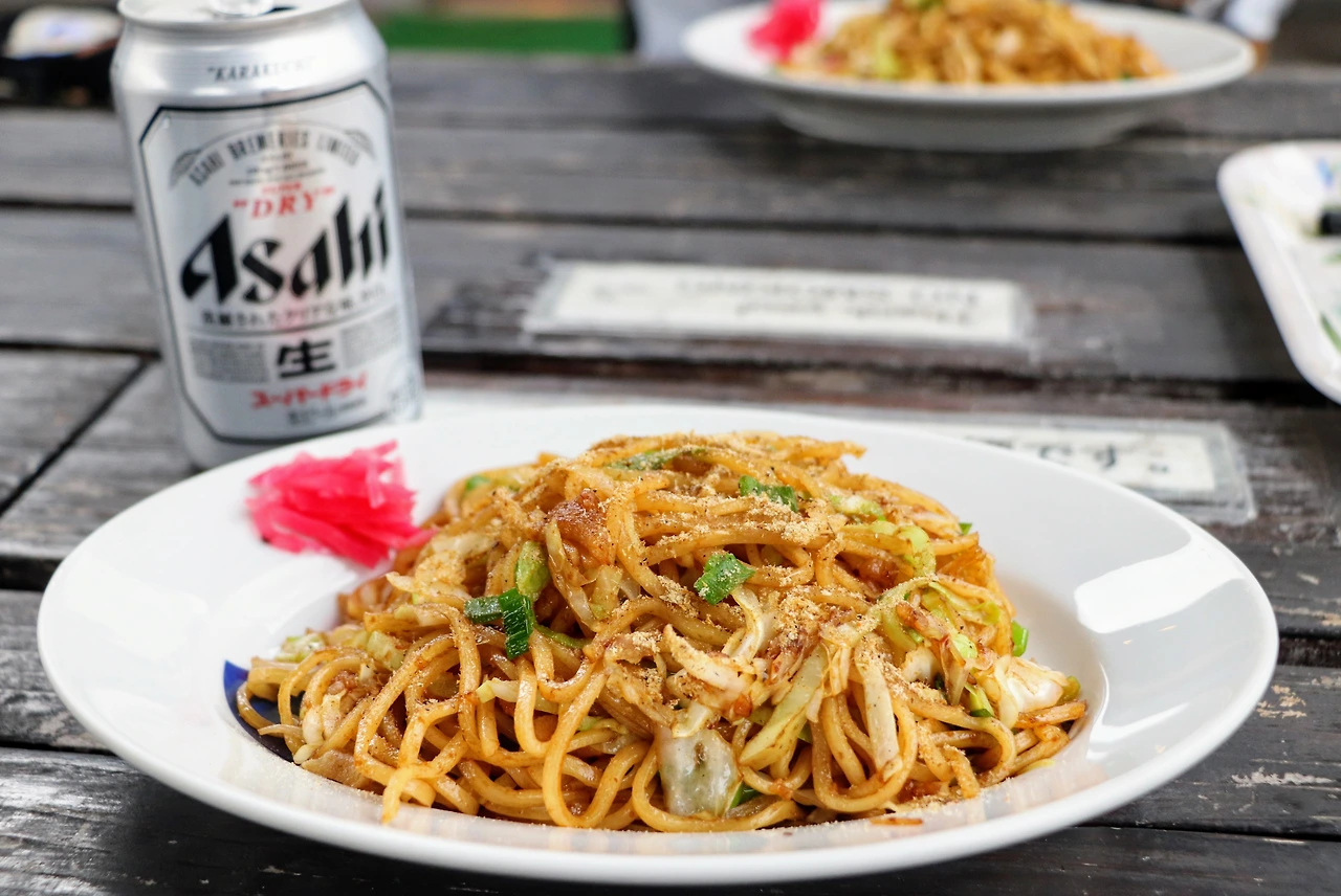 공원 옆에 있는 신사가 꽤 유명한 곳인지 외국인 관광객이 많았다. 우린 드라마 배경을 보러 온 것이었으므로 신사엔 들어가지 않고 공원에서 시간을 보냈다. 날 수나 있을까 싶은 뚱뚱한 비둘기가 구구 울고 있었다. 후타바와 히로키가 앉아 있던 벤치를 찾고, 서로를 떠나보내며 손을 흔드는 모습을 재현해 보기도 했다. 둘은 그 길로 헤어지지만 우리는 나란히 걸어 야키소바를 먹으러 갔다. 신기하게도 공원 바로 앞에 야키소바 거리가 있었다. 드라마를 보고 우연하게 떠올린 메뉴였는데 마침 야키소바로 유명한 곳이라니.