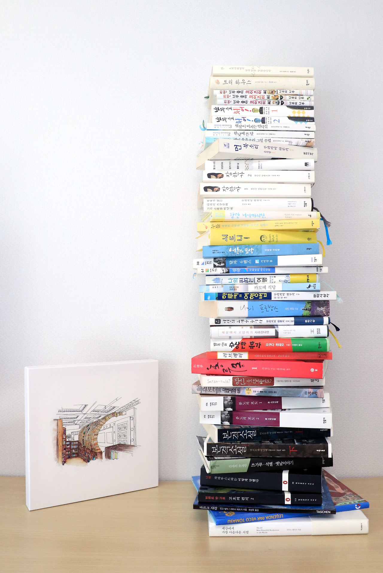 책, 영화, 드라마 등 작품 속 배경으로 떠나는 배경여행을 하려니, 다양한 작품을 끊임없이 봐야 했다. 처음엔 책의 배경이 되었거나, 영화나 드라마 촬영지면 무조건 소재가 되겠다 싶었는데, 작품이나 장소에서 큰 감동을 느끼지 못하면 글이 시시해졌다. 내가 20여 년간 산 동네엔 커다란 공원과 방송국이 곁에 있어서 가까이에 드라마 촬영지가 많다. 아침드라마부터 주말드라마까지. 주변에 소재가 넘쳐났지만, 가까운 곳은 매력이 없어서가 아니라(동네 산책도 근사한 여행이 되곤 한다), 주변을 배경으로 하는 작품 중 마음에 드는 것을 발견하지 못했다. 이왕이면 '마음에 남은 작품 속 그곳만으로 해보자!'란 생각으로 하고 있지만, 실제로 여행까지 가볼 마음이 드는 작품을 만날 확률은 높지 않다. 그런 작품을 만나기 위해 나는 많은 책을 읽는다. 가 아닌 산다. 실은 책을 사는 일을 굉장히 좋아한다. 책에 둘러싸이는 일이 즐거운 것이다! 책을 사는 일 만으로도 반은 읽었단 기분이 들어버린다.