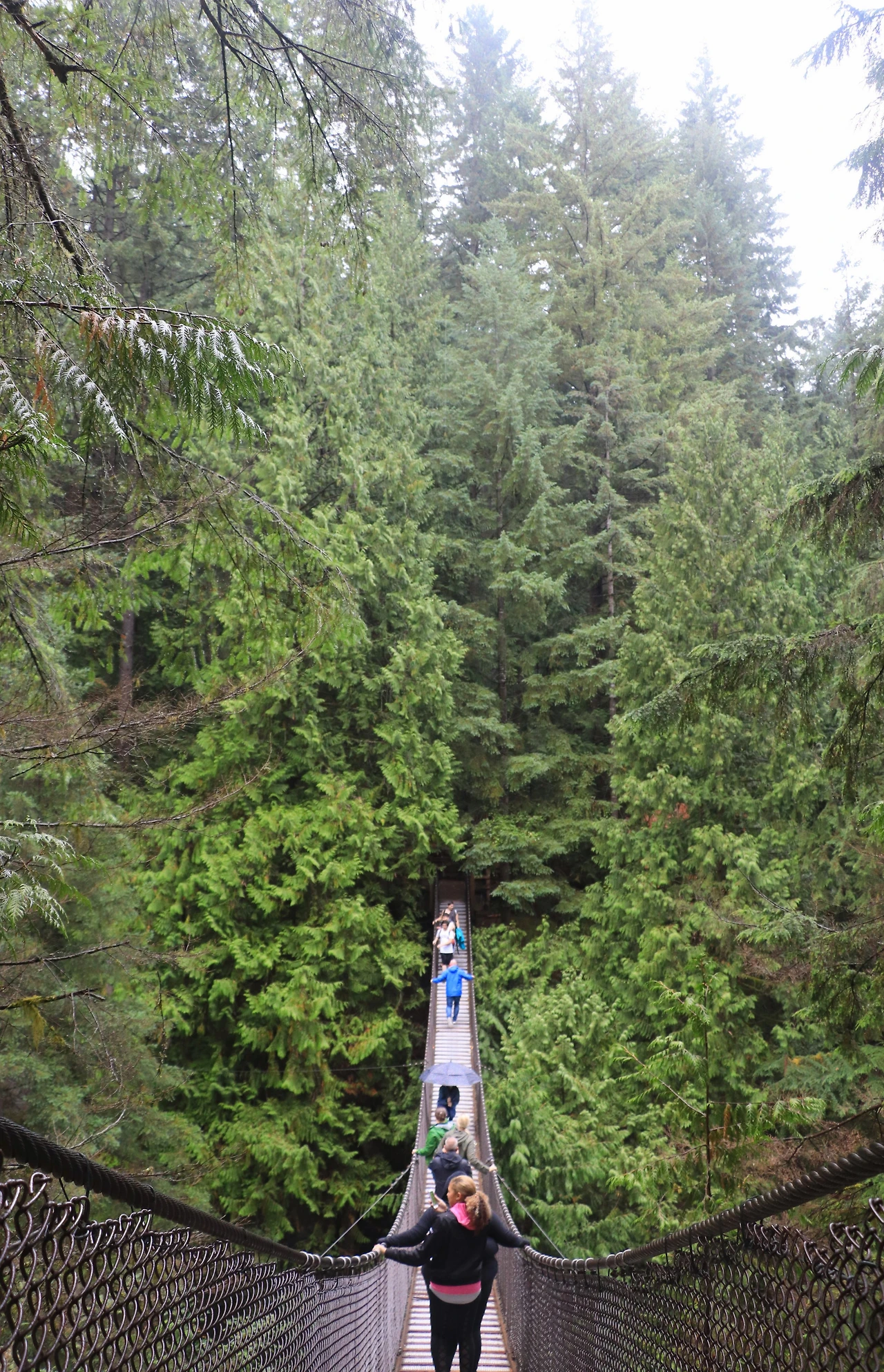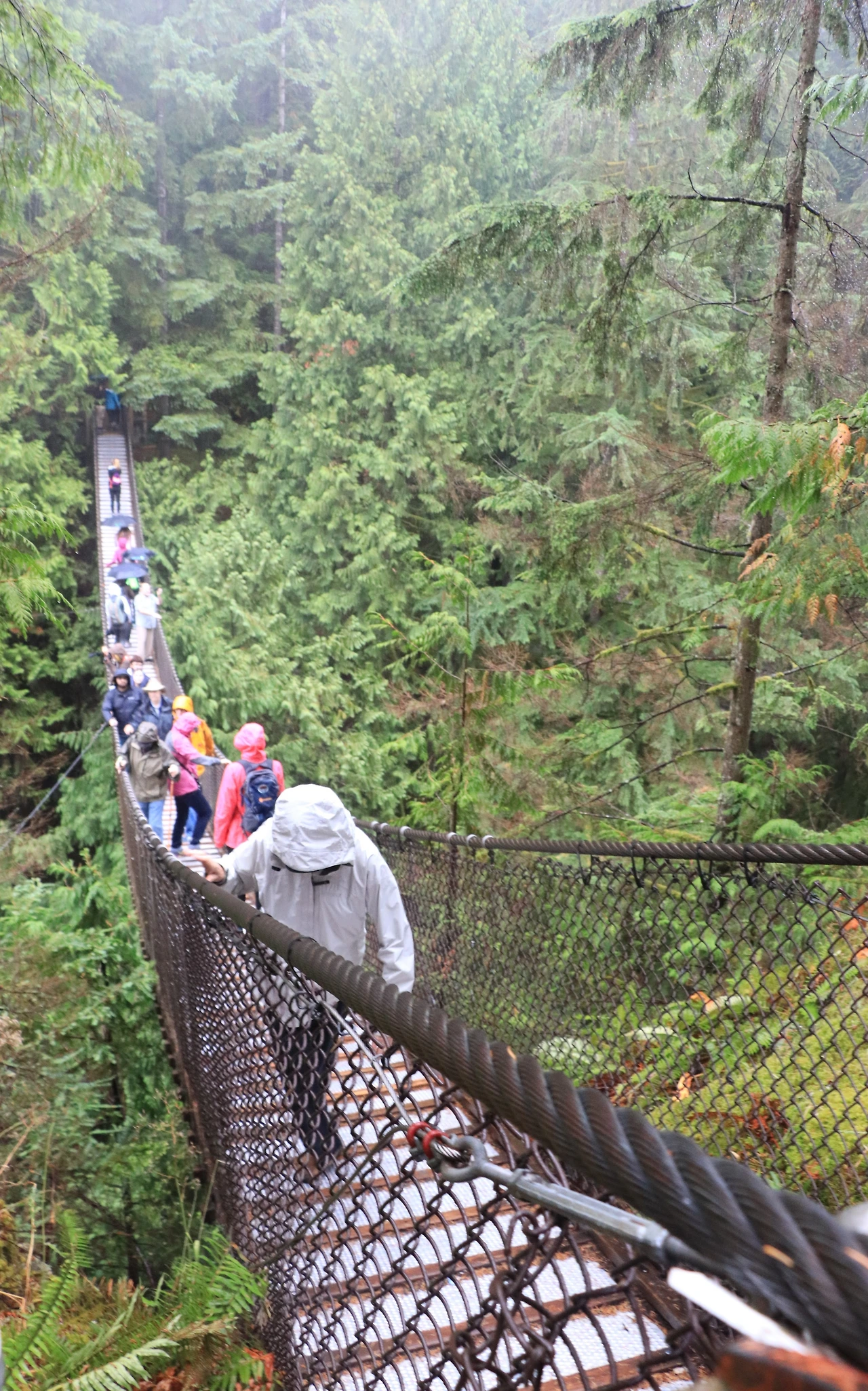 1912년에 문을 연 린 캐니언 공원은 현재 250 헥타르 규모로 밴쿠버에서 가장 크고 인기 있는 공원이라고 한다. 소설 속 문장처럼 밴쿠버 중심가에서 그리 멀지 않은 곳이기 때문에 우리는 당연 비가 그치기 전 공원에 도착해 버렸다. 첫날부터 우비를 꺼내 입고, 비 냄새가 섞여 더욱 신선한 숲의 공기를 내뿜던 린 캐니언 공원 안으로 들어갔다.
