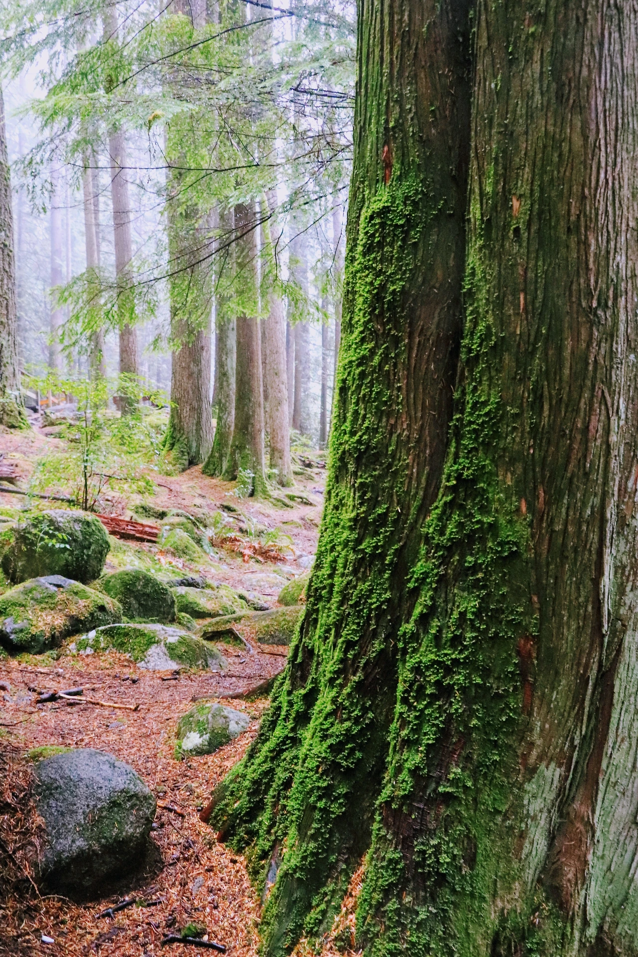 나무들이 좀처럼 휘지 않고 하늘을 향해 쭉쭉 뻗어있었다. 위를 한참 올려다 보아도 얼마나 커다란지 가늠이 안 되는 크기. 중간중간 쓰러져 있는 나무의 몸통을 따라 뿌리에서 줄기 끝까지 걸어보았다. 그제야 나무들이 얼마나 높은 곳까지 올라 있는지 헤아려진다. 땅에서, 돌멩이에서 시작해 나무를 타고 올라가는 이끼도 깨끗하고 앙증맞다. 이곳에 오기 얼마 전 한국에서 차로 몇 시간을 달려 이끼계곡까지 다녀온 일이 무색해졌다. 이토록 흔하게 만날 수 있는 이끼인데.