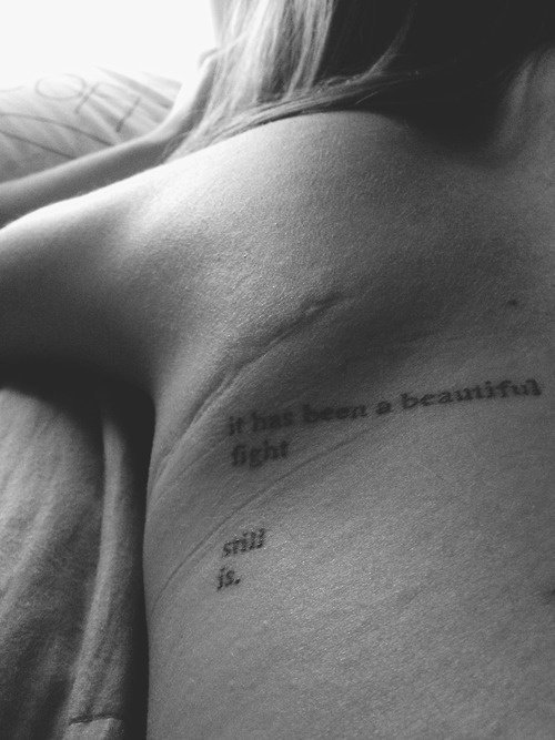 "그대들의 흉터에 박수를 보냅니다. 누구나 상처 하나쯤은 있겠죠. 마음의 상처든 뭐든 그 상처가 잘 아물길.. 흉터는 상처를 극복했다는 증거니까요."