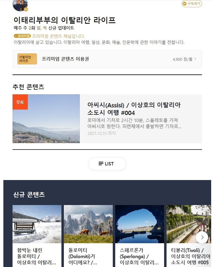 2. 네이버 프리미엄 콘텐츠 <이태리부부의 이탈리안 라이프>