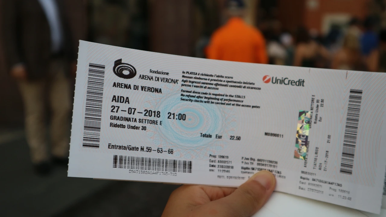 나는 가장 저렴한 25유로 좌석을 현장에서 구매했는데 현장 구매의 가장 큰 혜택이라면 국제 학생증 또는 30세 미만, 65세 이상이라면 10% 할인을 적용해준다는 거다. 무려 베로나 오페라를 22.5유로에 관람이라니!! 베로나 아레나 극장 입장료만 해도 10유로인데 이 기간 베로나를 방문하신다면 무조건 오페라 관람을 적극 추천한다.